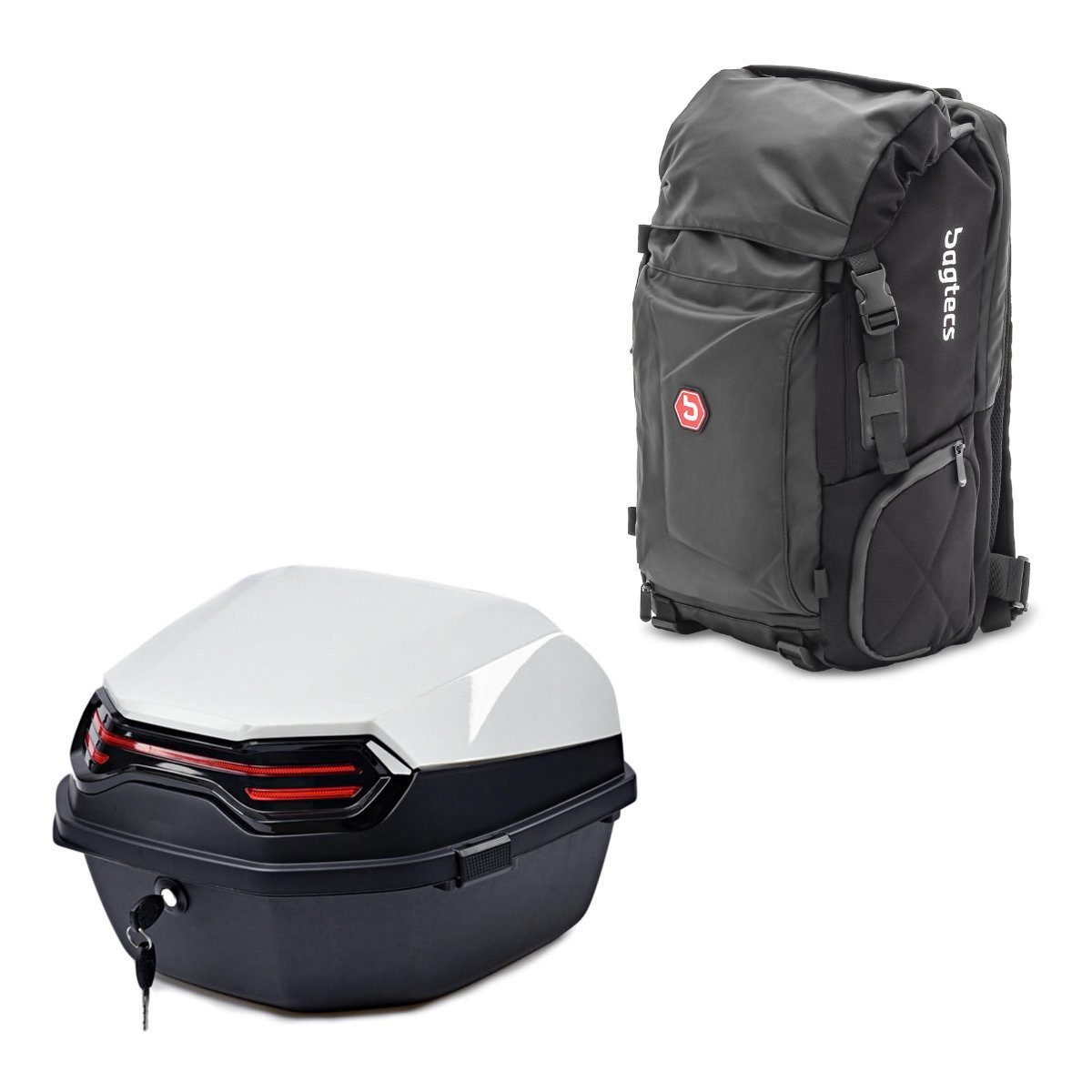 Bagtecs Rucksack Set: Rucksack # HX5 Hecktasche 45Ltr mit Helmhalterung + Topcase BT11