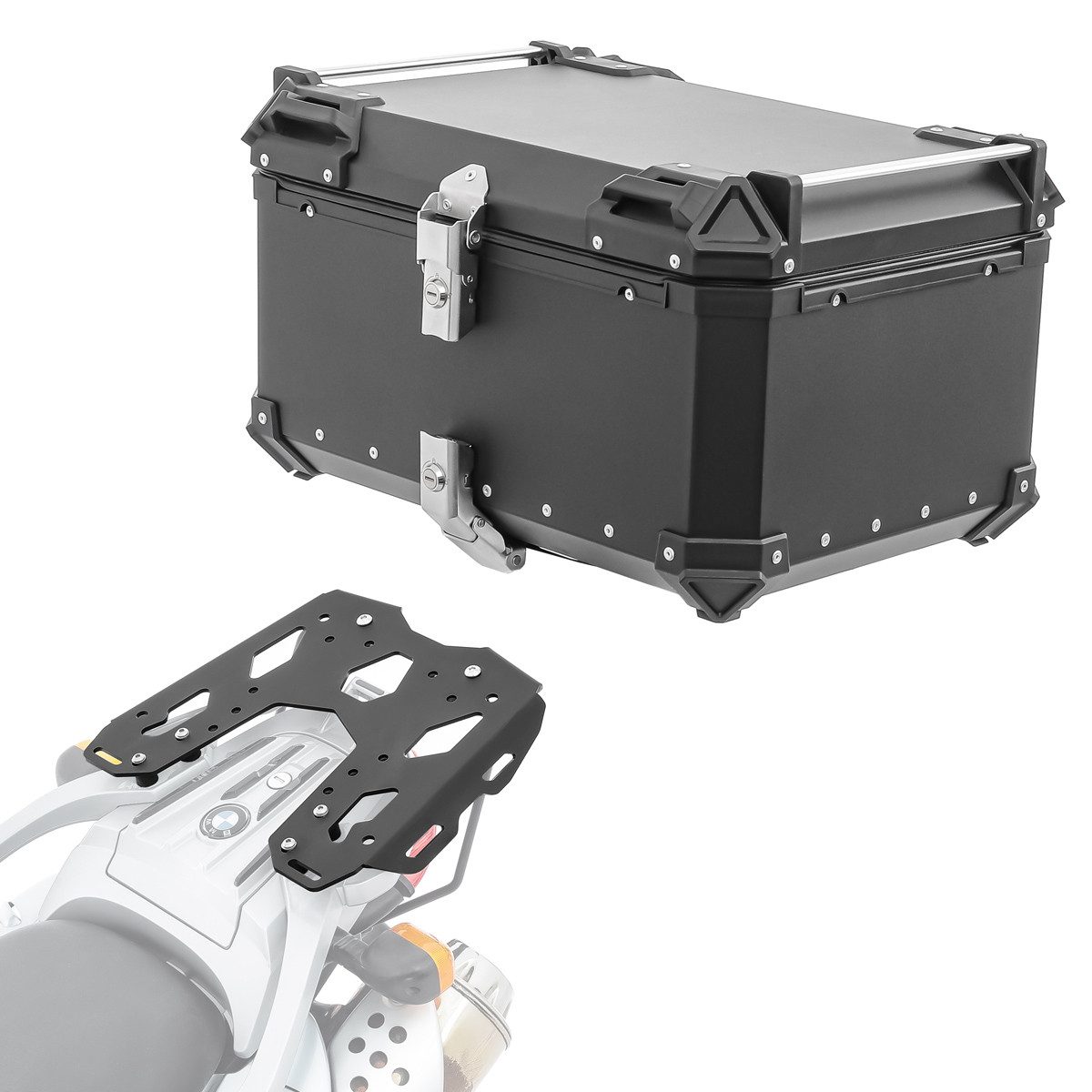 • Bagtecs Set bestehend aus Aluminium Topcase und modellspezifischem Topcaseträger