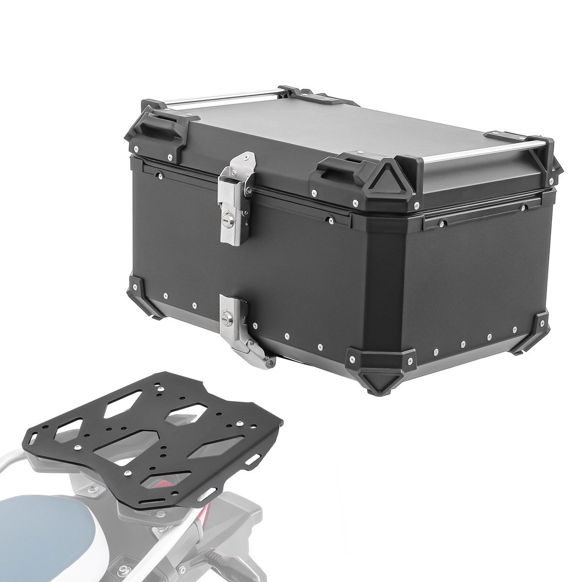• Bagtecs Set bestehend aus Aluminium Topcase und modellspezifischem Topcaseträger