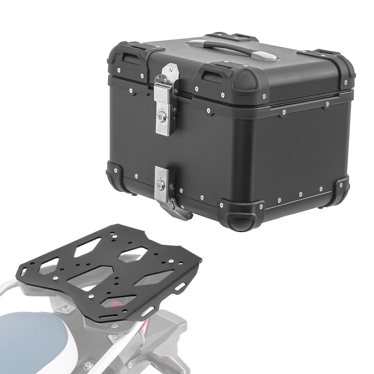 • Bagtecs Set bestehend aus Aluminium Topcase und modellspezifischem Topcaseträger