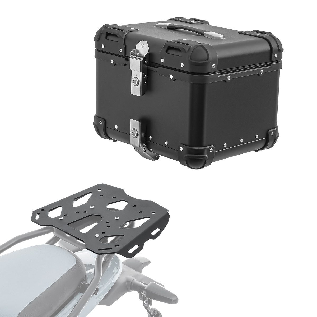 • Bagtecs Set bestehend aus Aluminium Topcase und modellspezifischem Topcaseträger