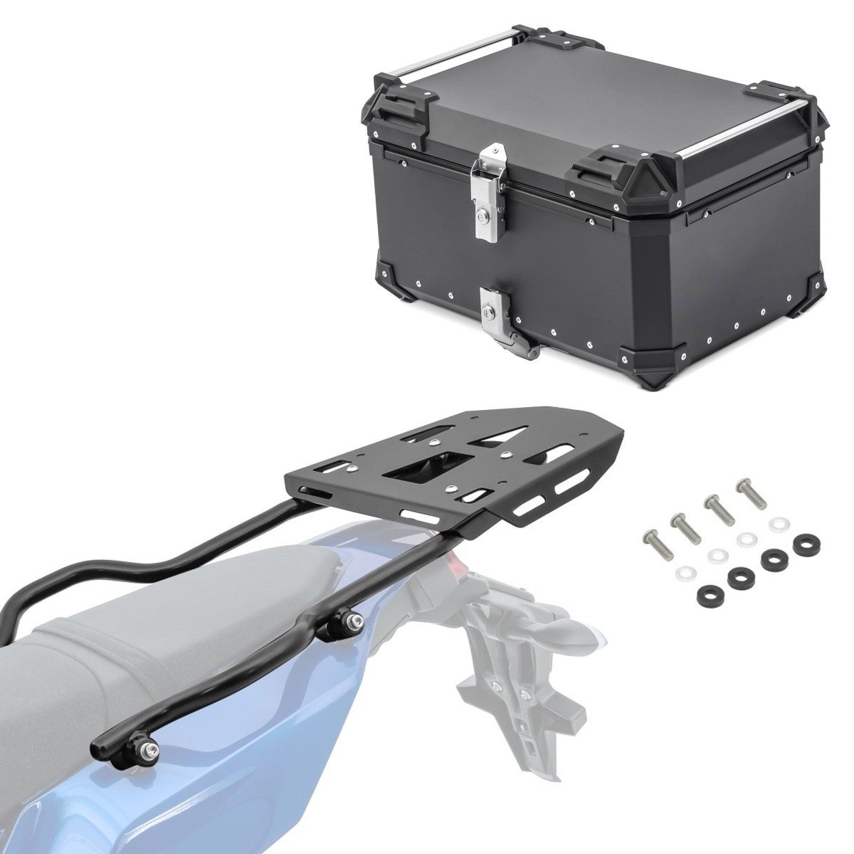• Bagtecs Set bestehend aus widerstandsfähigem Stahl Topcase und modellspezifischem Topcaseträger