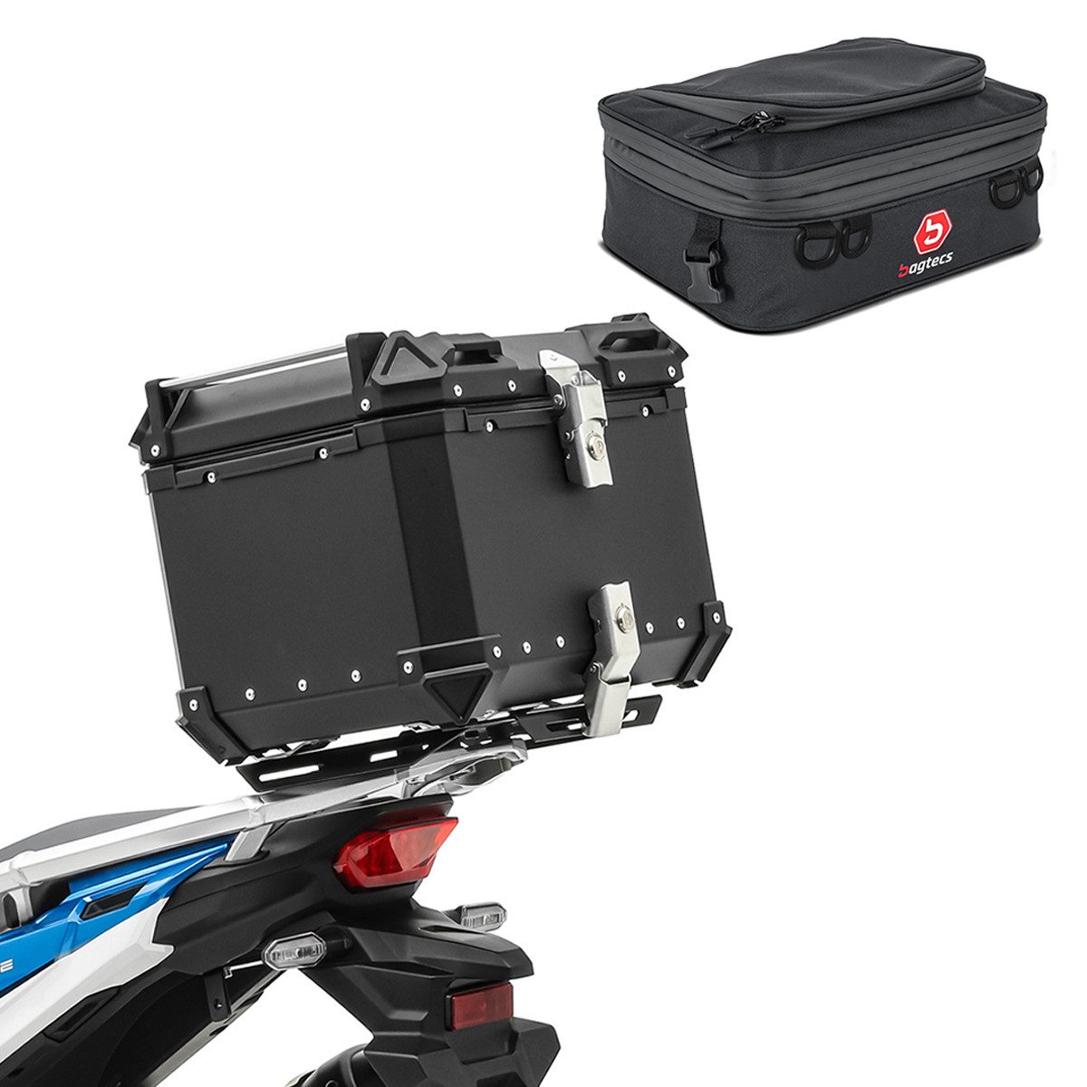 Bagtecs Topcase Set Motorrad Aluminium Topcase 45L + Zusatztasche # XB45 Alu Top Case