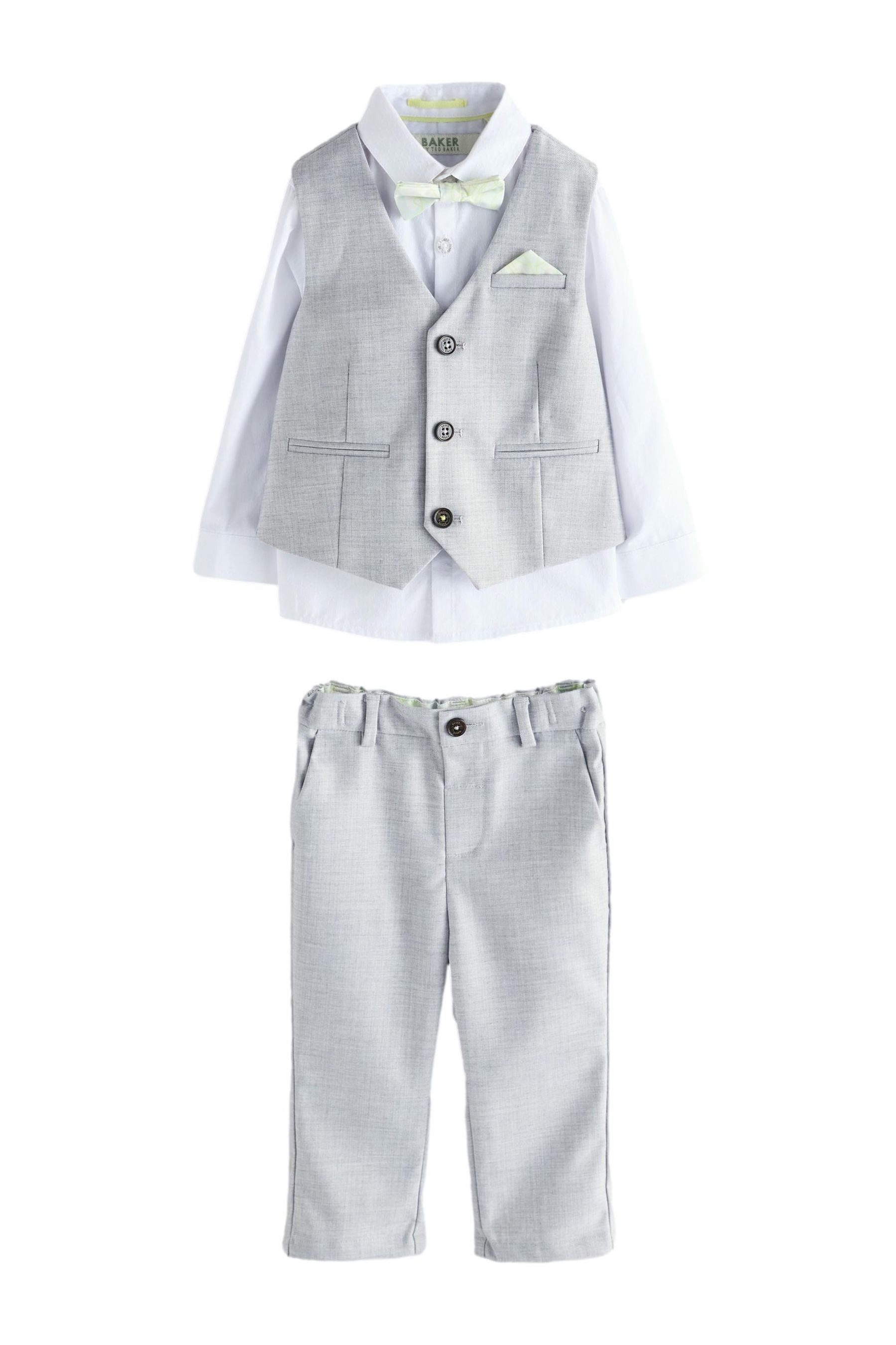 Materialzusammensetzung | Weste: Hauptmaterial: 89 % Polyester, 9 % Viskose, 2 % Elastan, Futter: 100 % Polyester/ Hose: Hauptmaterial: 89 % Polyester, 9 % Viskose, 2 % Elastan/ Hemd: Hauptmaterial: 100 % Baumwolle/ Fliege: Hauptmaterial: 100 % Polyester |