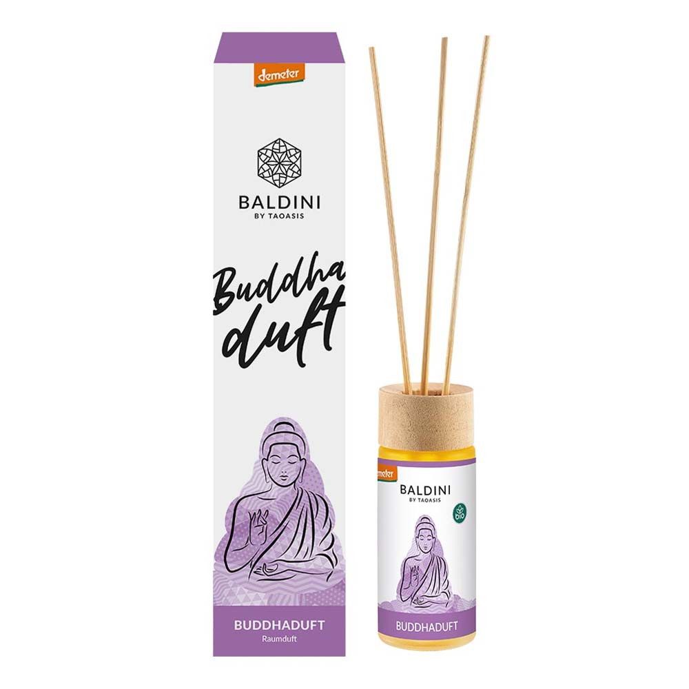 Buddhaduft Raumduftset ist ein Demeter-Raumduft aus 100 % naturreinen ätherischen Ölen und demeter-Alkohol im dekorativen Glasflacon, inkl. 5 Bambusdiffusionsstäbchen. Baldini Buddhaduft ist der sanft beruhigende Naturduft mit Benzoe, Sandelholz und Tonka. Einmal tief durchatmen, die Gedanken zur Ruhe kommen lassen und die Leichtigkeit, Stille und Schönheit dieses besonderen Augenblicks genießen!