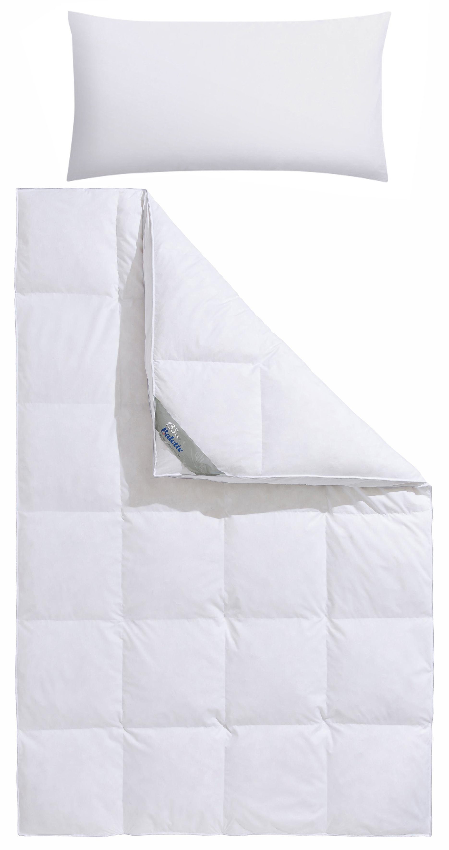 Eine traumhafte Nachtruhe unterstützt die hochwertige Federbettdecke »Lena« der Marke OBB mit Baumwollbezug. Die Füllung aus weißen, neuen Federn macht diese Bettdecke kuschelig weich und schenkt ihr ein angenehmes Volumen. Dank der Kastensteppung bleibt der Inhalt stets an seinem Platz, wodurch die Wärme gleichmäßig verteilt wird. Der softe Bezug aus reiner Baumwolle punktet mit hautsympathischen und atmungsaktiven Eigenschaften. Ein weiterer Pluspunkt ist, dass du dieses Federbett zur Reinigung bei bis zu 60 °C in der Maschine waschen kannst. Zudem ist es trocknergeeignet und damit eine geeignete Wahl für Hausstauballergiker. Warm, weich und angenehm schwer: die Federbettdecke »Lena« aus dem Меню von OBB mit Baumwollbezug.