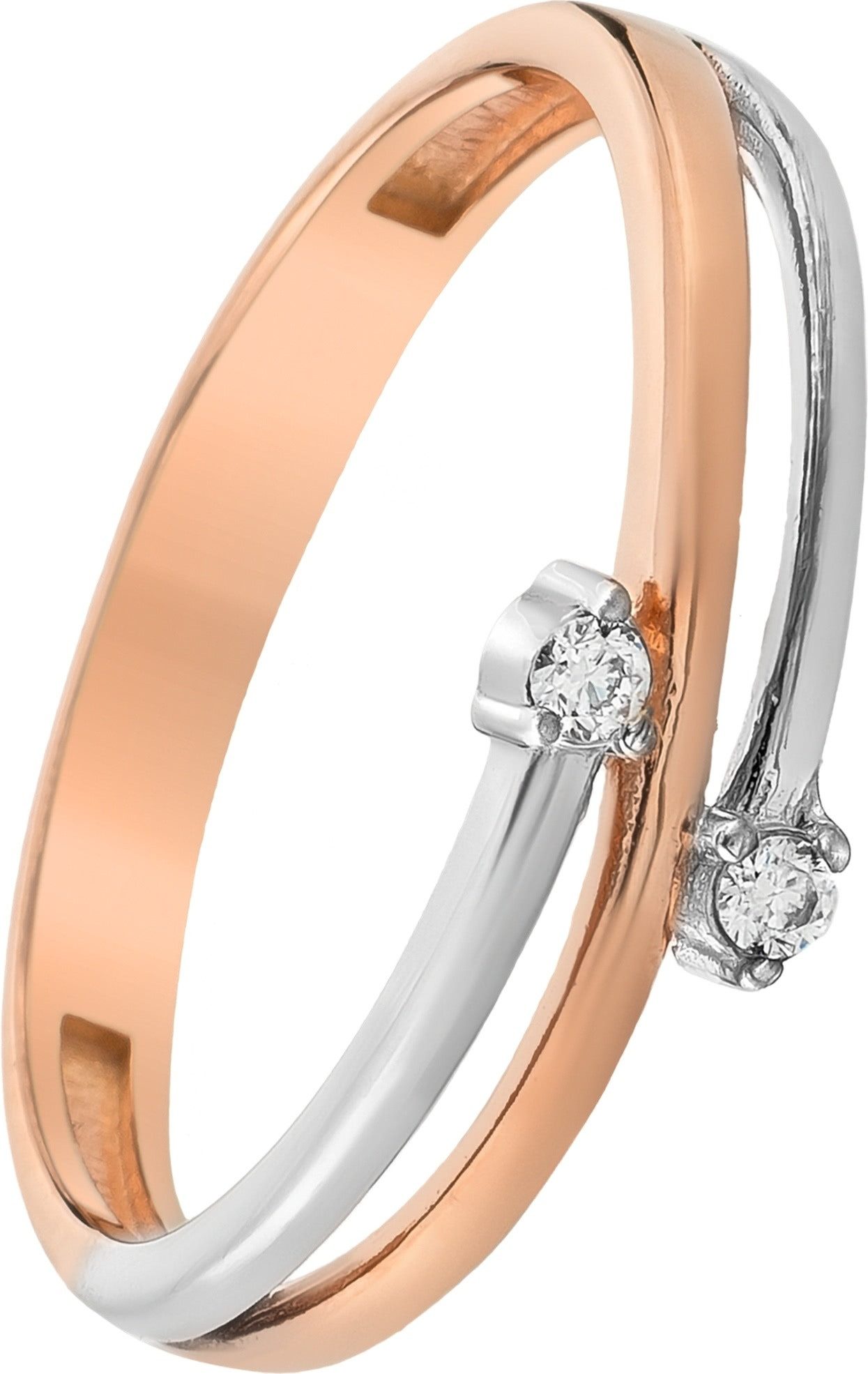 Moderner zweifarbiger Ring Boho aus 333er Rosegold und 333er Weißgold gefertigt. Die zwei Zirkonias funkeln auf dem Ring. Der Ring hat eine Размер von 58 (18,5).