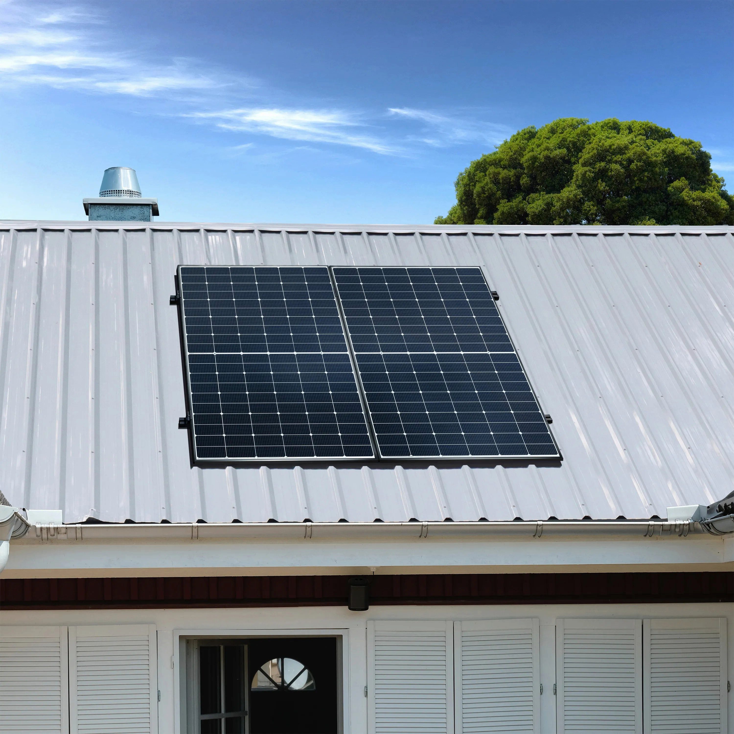 Lieferumfang | 2 x 450-Wp JA Solarmodule 2 x Montagesystem Blechdach 1 x Hoymiles HMS-800W-2T Wechselrichter 2 x 0 5 m MC-4 Verlängerungskabel |