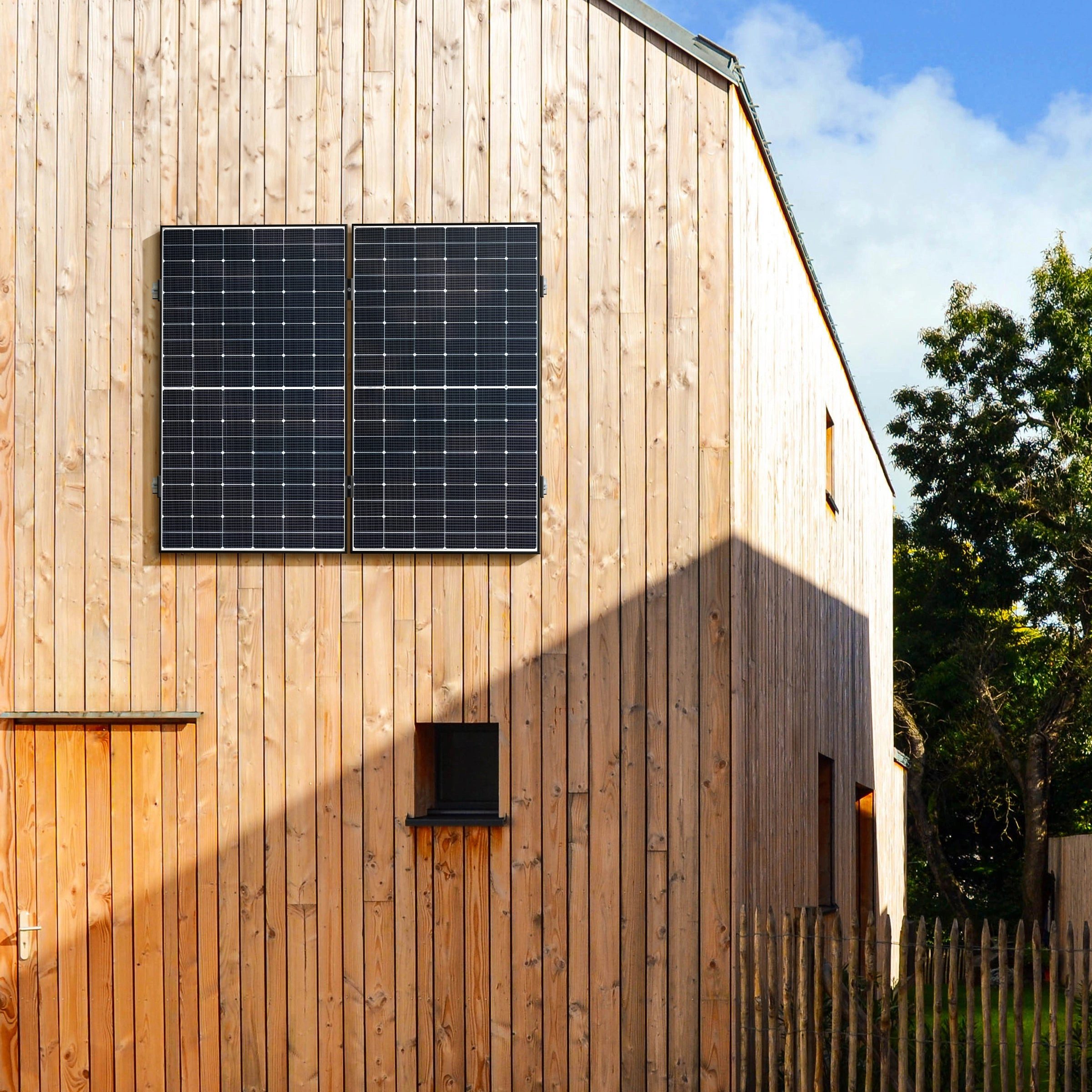 Lieferumfang | 2 x 450-Wp JA Solarmodule 2 x Montagesystem Fassade 90 Grad 1 x Hoymiles HMS-800W-2T Wechselrichter 2 x 1 m & 2 x 0 5 m MC-4 Verlängerungskabel |