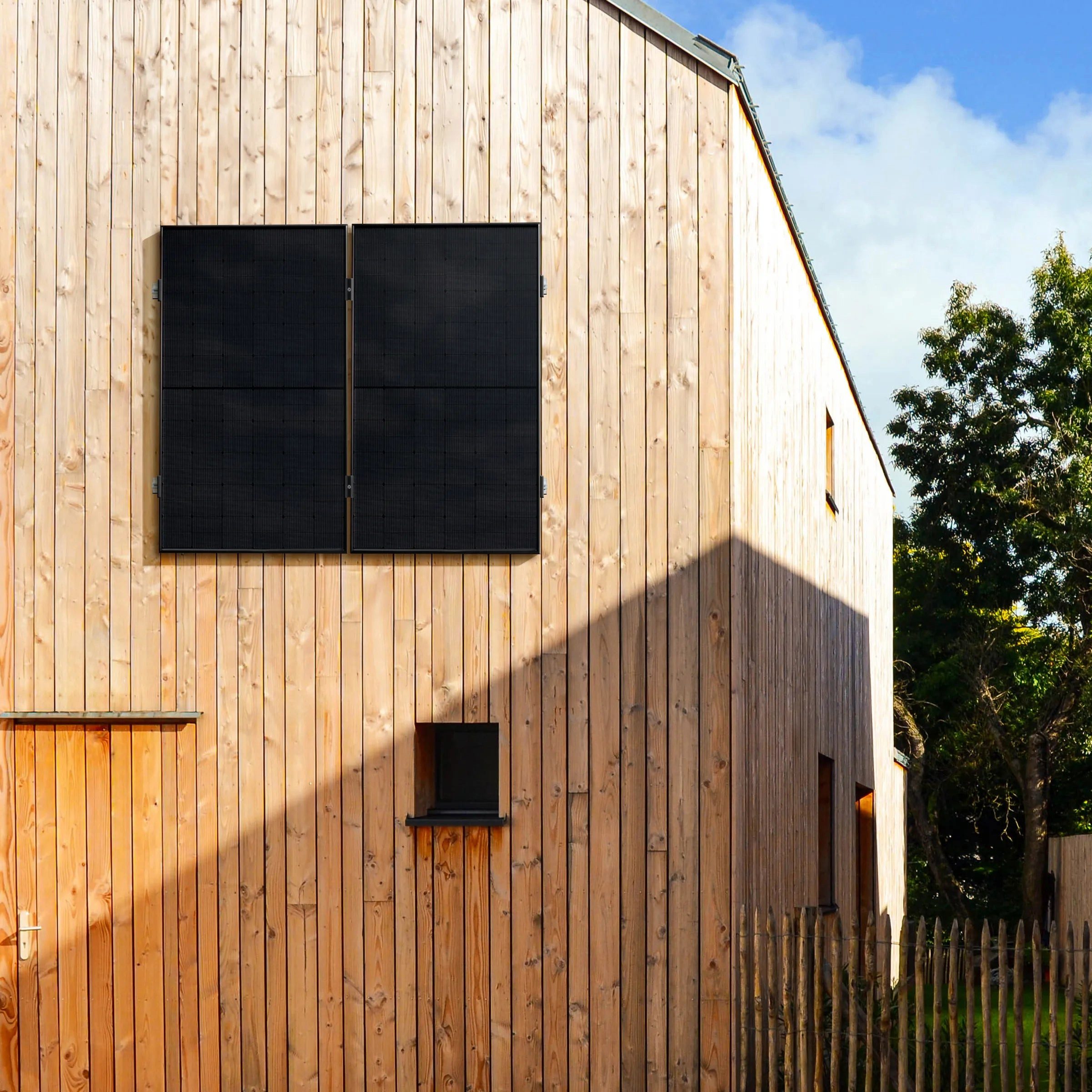 Lieferumfang | 2 x 500-Wp Sunpro Solarmodule 2 x Montagesystem Fassade 90 Grad 1 x Hoymiles HMS-800W-2T Wechselrichter 2 x 1 m & 2 x 0 5 m MC-4 Verlängerungskabel |