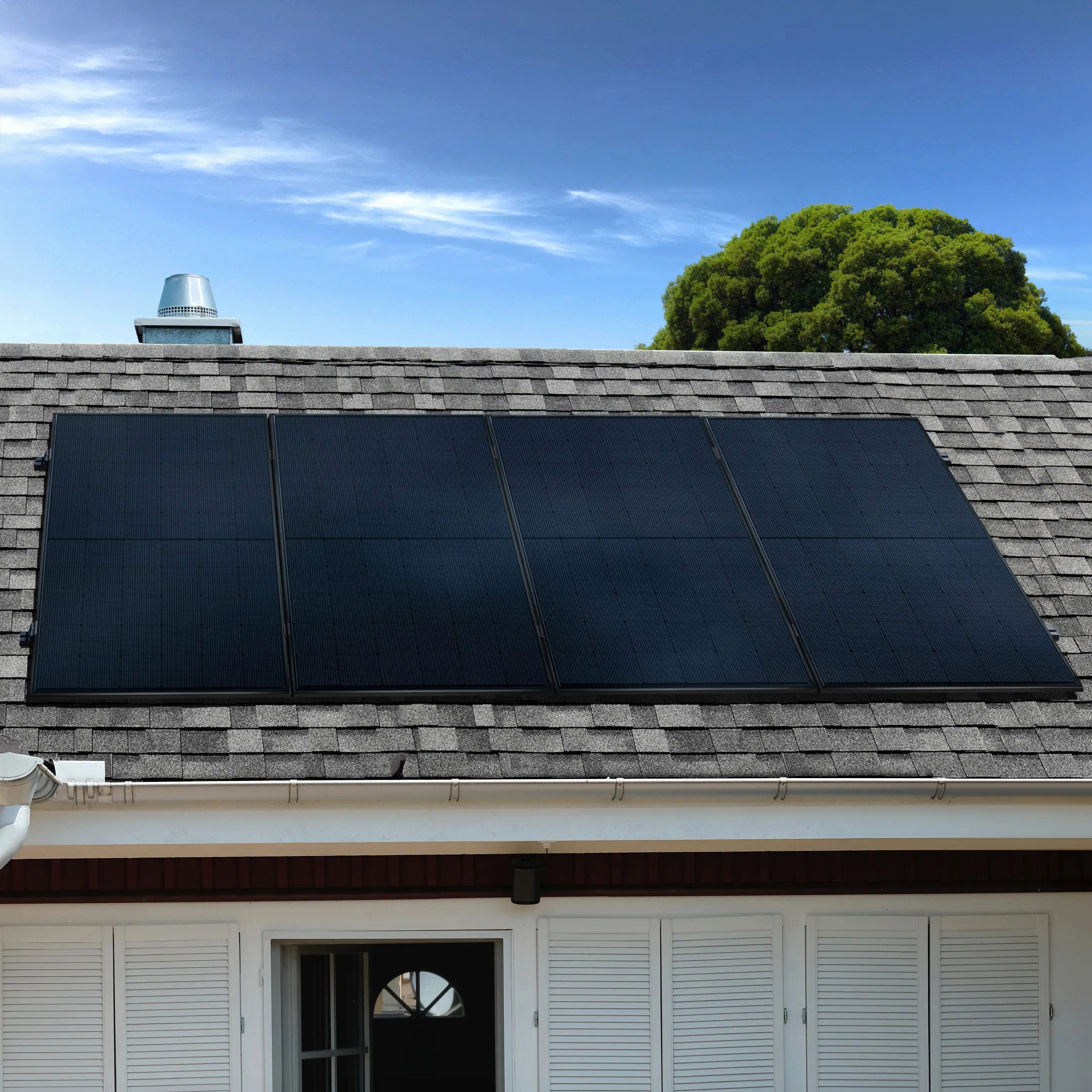 Premium Balkonkraftwerk mit vier bifazialen Solarmodulen in Fullblack-Optik (1800 W). Inklusive Hoymiles 800-Watt-Wechselrichter mit integriertem WLAN.
