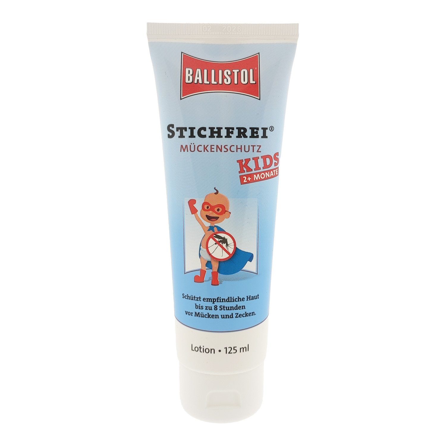 Ballistol Stichfrei Kids schütz zuverlässig bis zu 8 Stunden vor Mücken, Zecken, Bremsen und anderen Blutsaugern. Die Lotion ist besonders hautfreundlich und versorgt die Haut zusätzlich mit Feuchtigkeit. Ballistol Kids ist dermatologisch auf Hautverträglichkeit mit "Sehr gut" getestet. Für Kleinkinder ab 2 Monaten und Schwangere geeignet. Ein effektiver Insektenschutz mit angenehmer Duftnote.