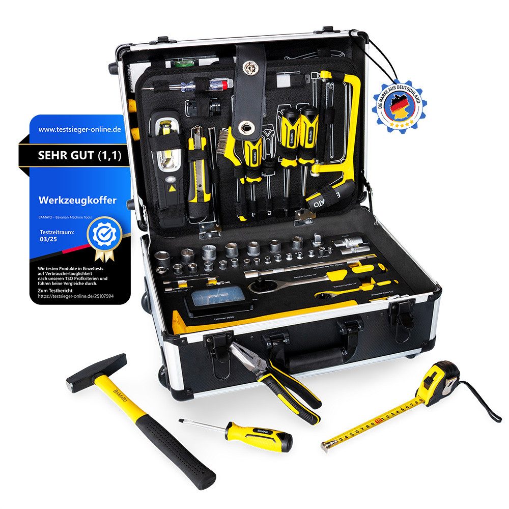Der BAMATO Werkzeugkoffer WORK-169 bietet eine durchdachte Auswahl an hochwertigen Werkzeugen für Heimwerker, Handwerker und Profis. Mit 169 sorgfältig zusammengestellten Teilen ist dieses Set ideal für Reparaturen, Montagen und handwerkliche Projekte in Haus, Garage oder Werkstatt.