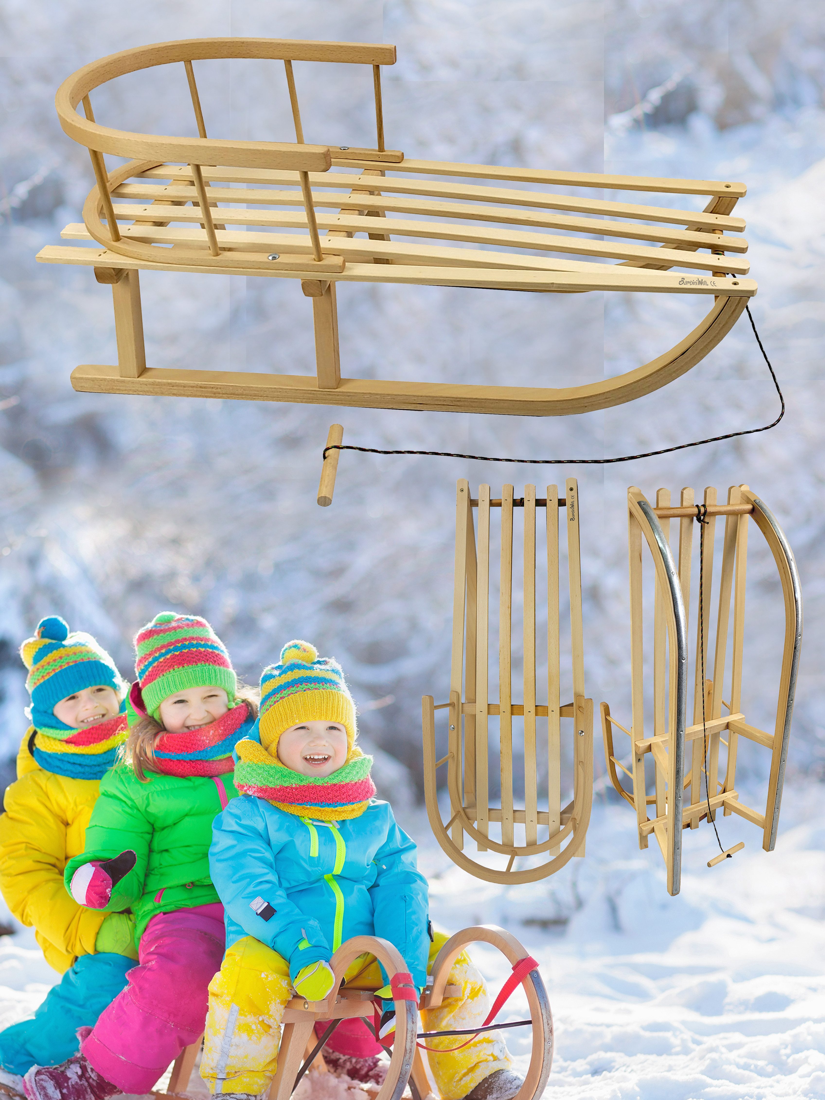 Bambiniwelt Holzschlitten, 90 cm, mit Zugseil und Rückenlehne
