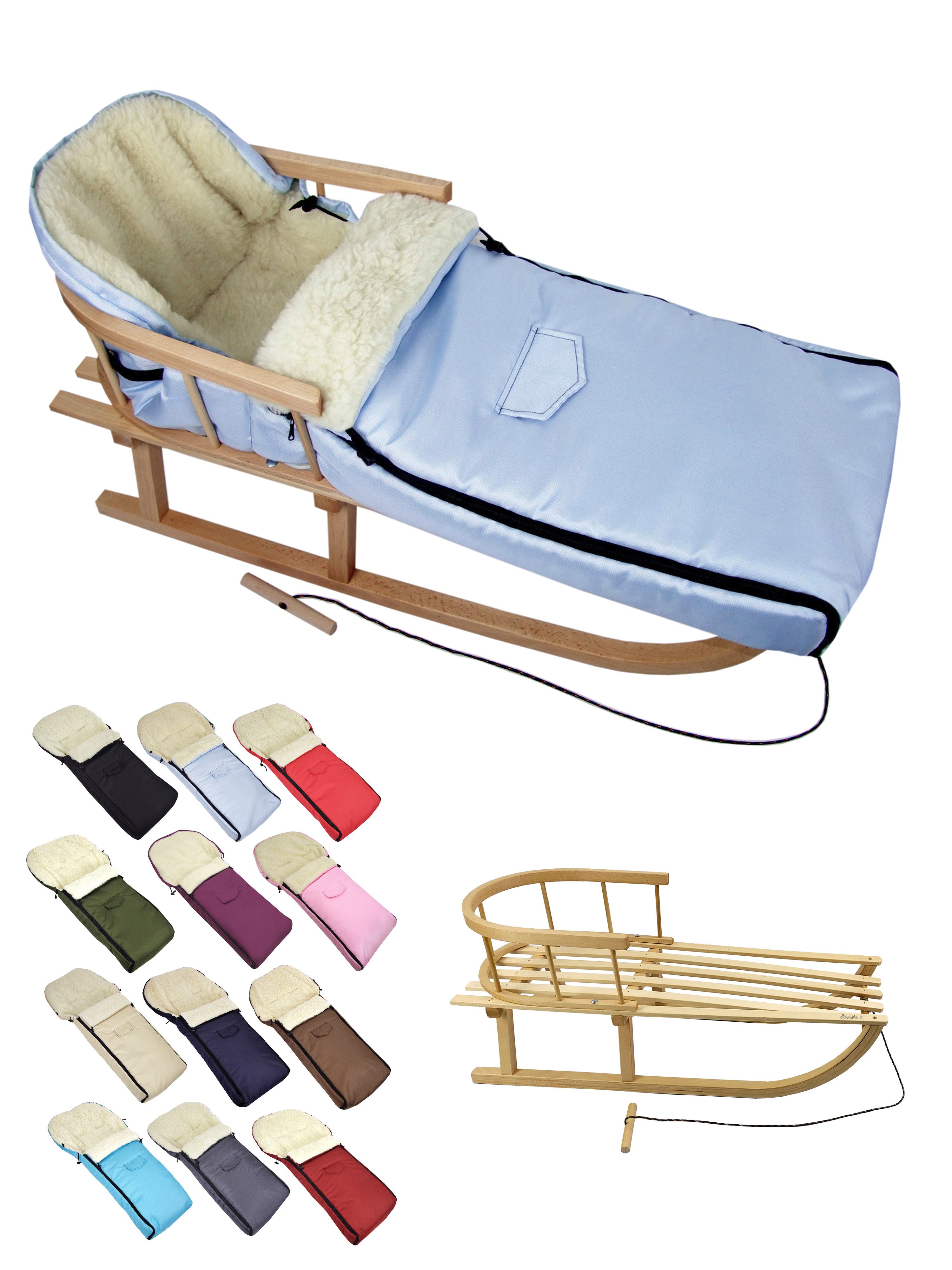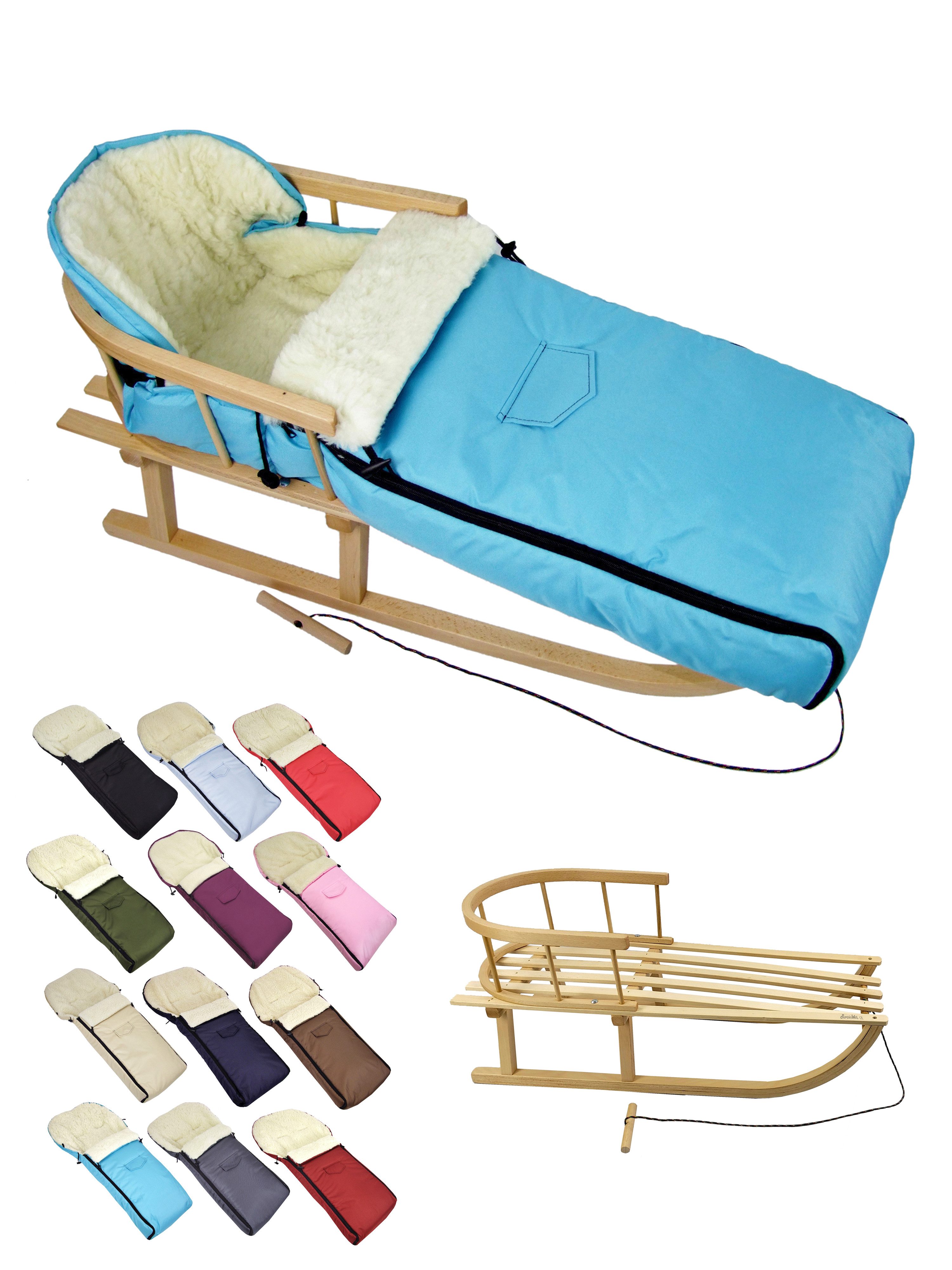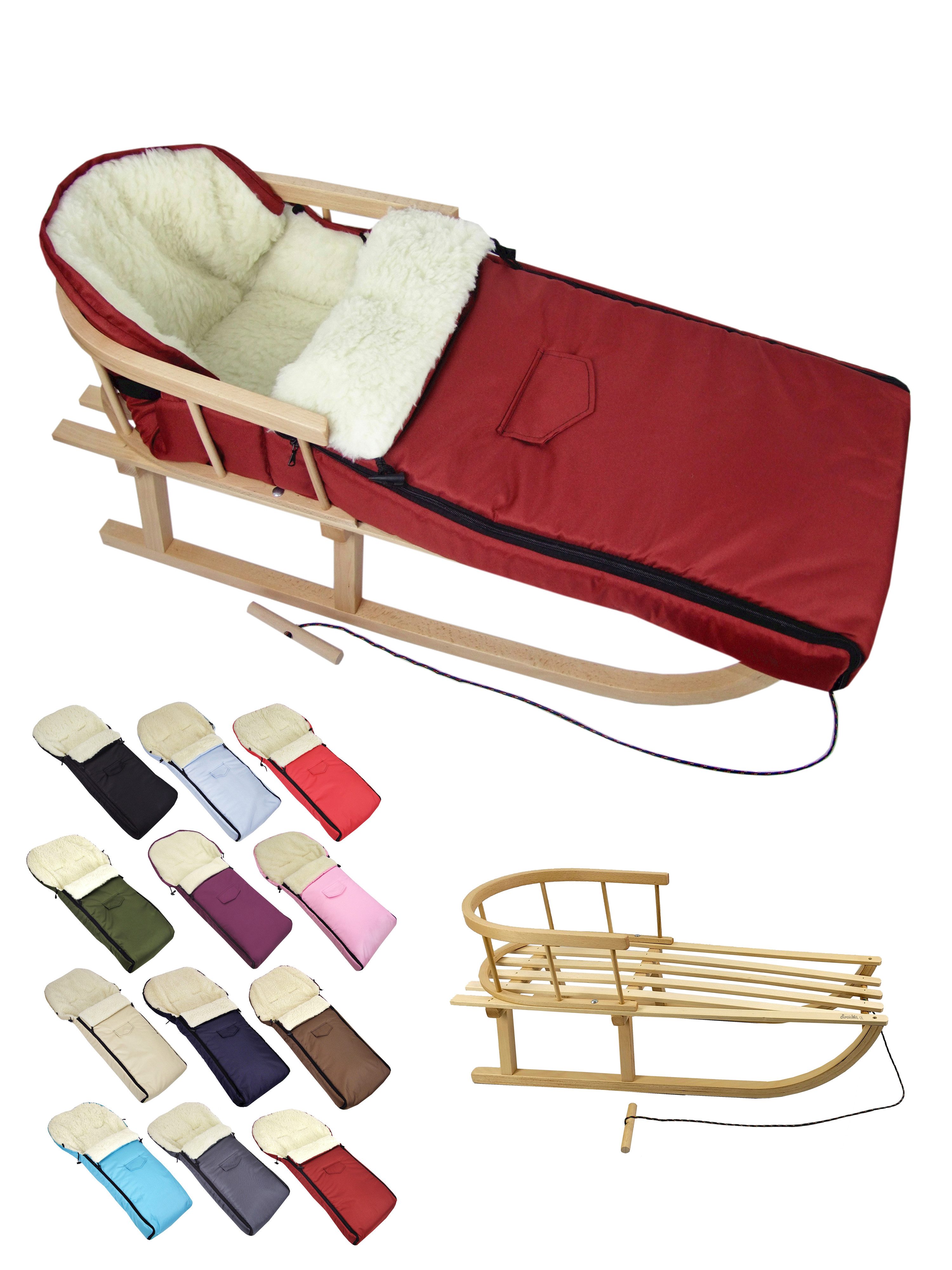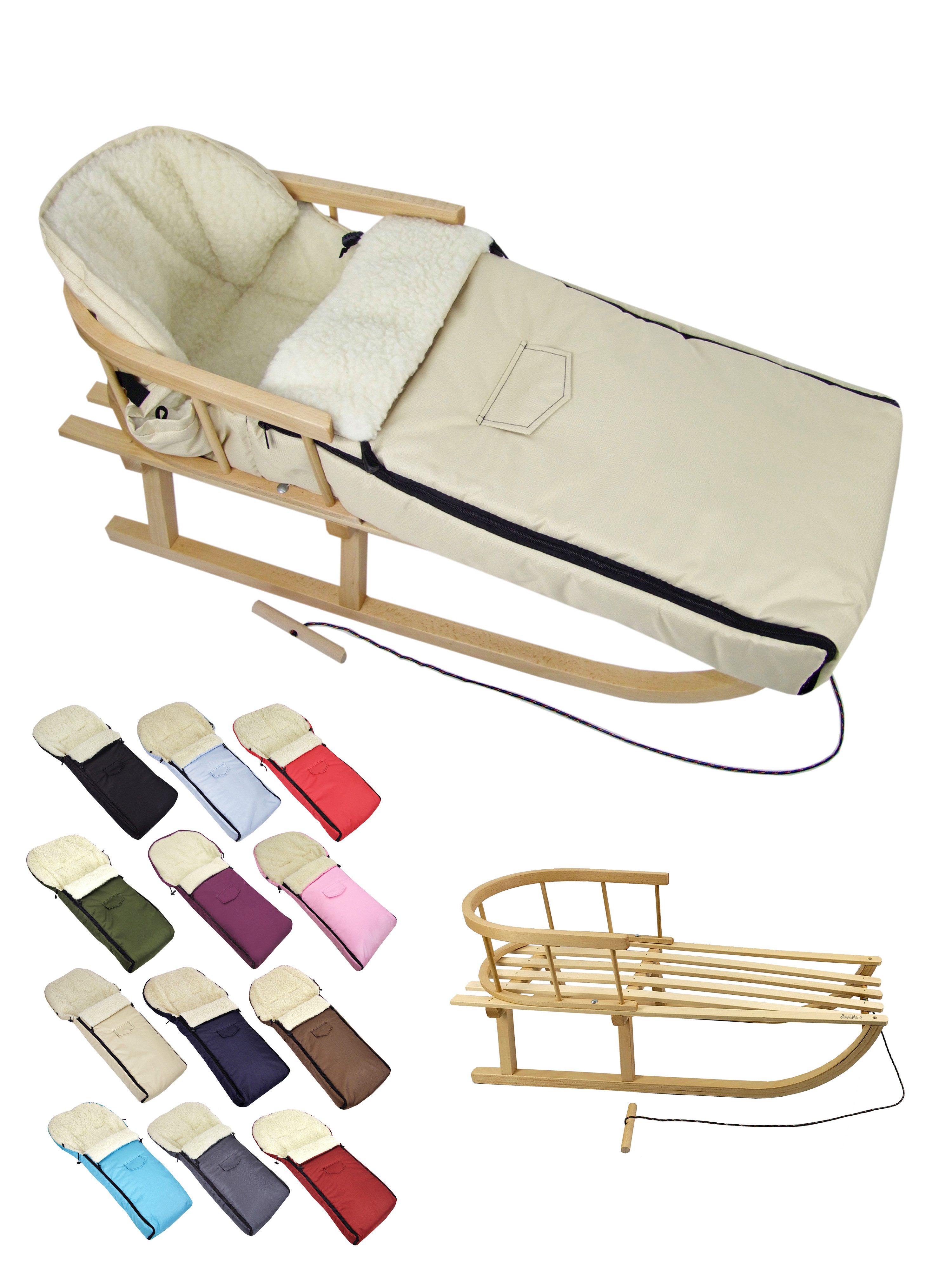 Ausstattung | Schlitten: mit Rückenlehne und Zugseil universaler Winterfußsack |