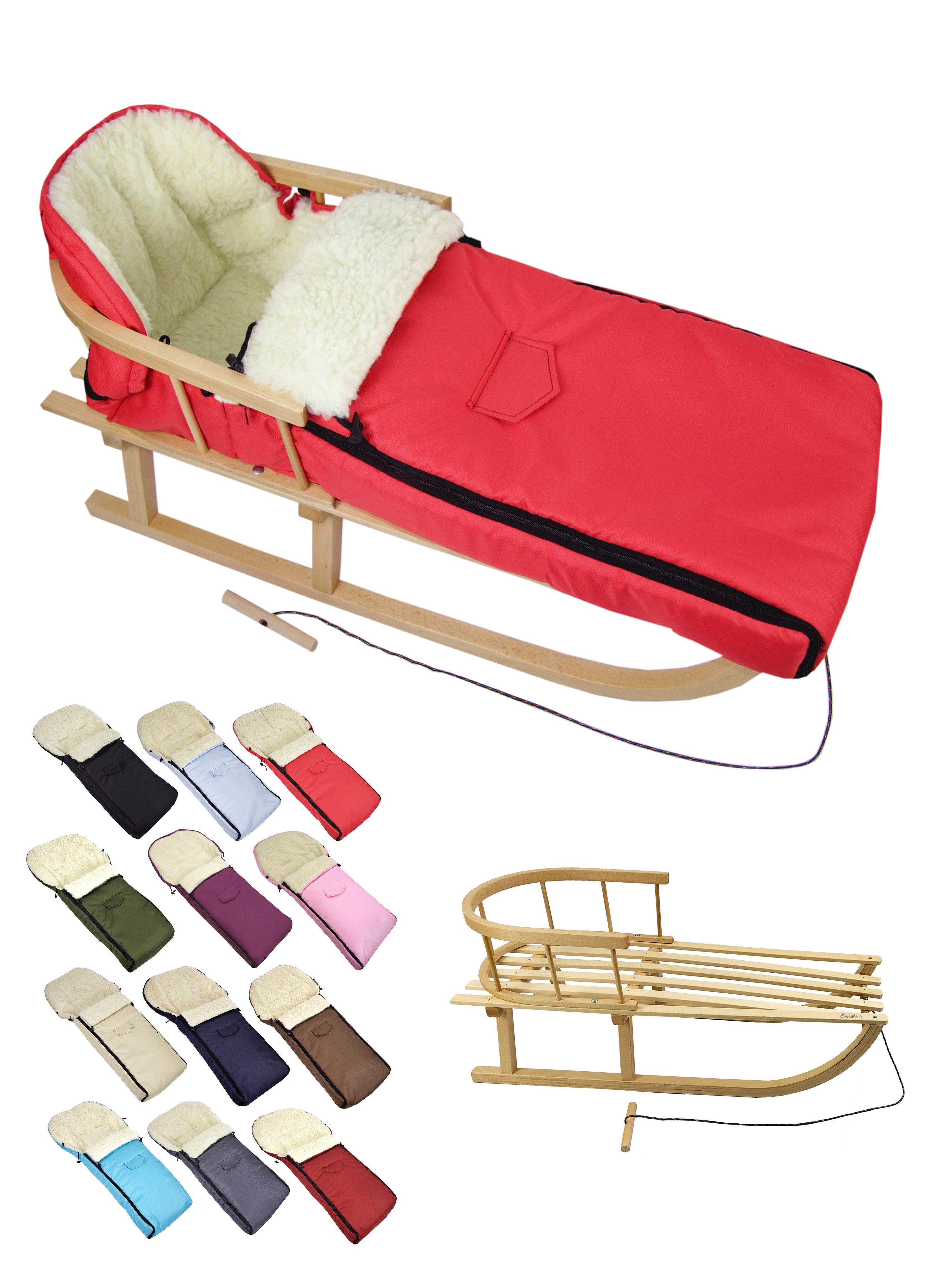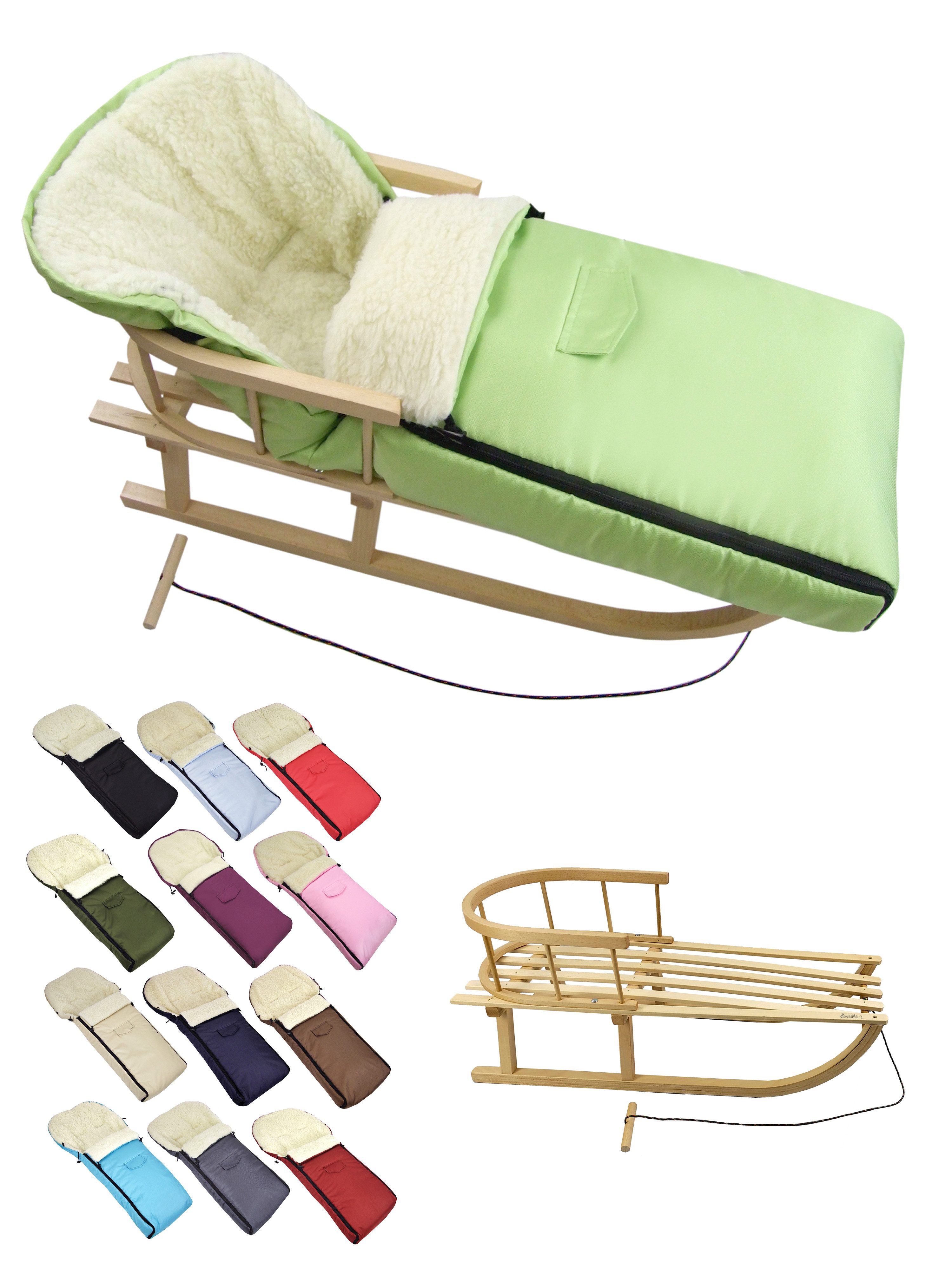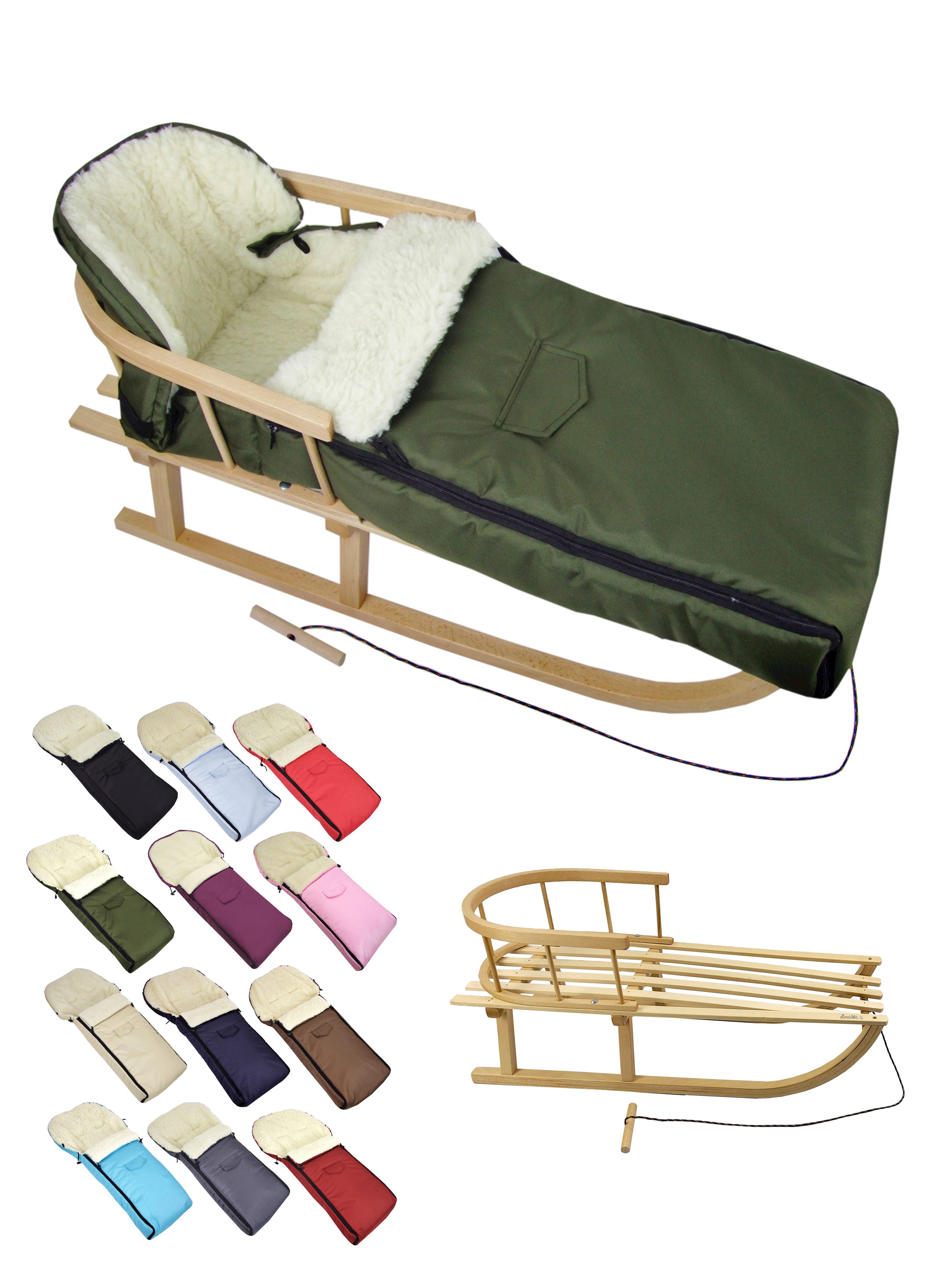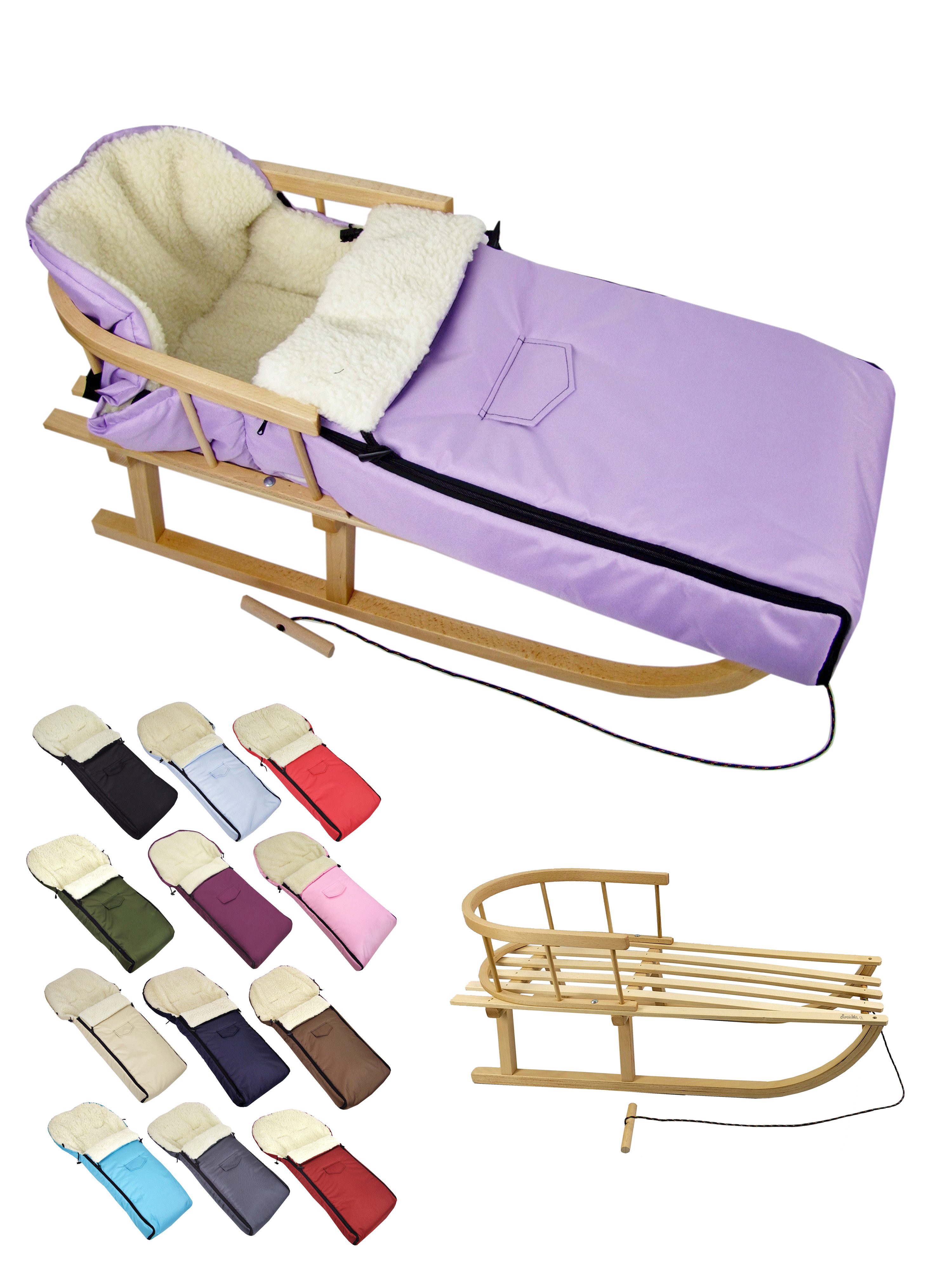 Ausstattung | Schlitten: mit Rückenlehne und Zugseil universaler Winterfußsack |