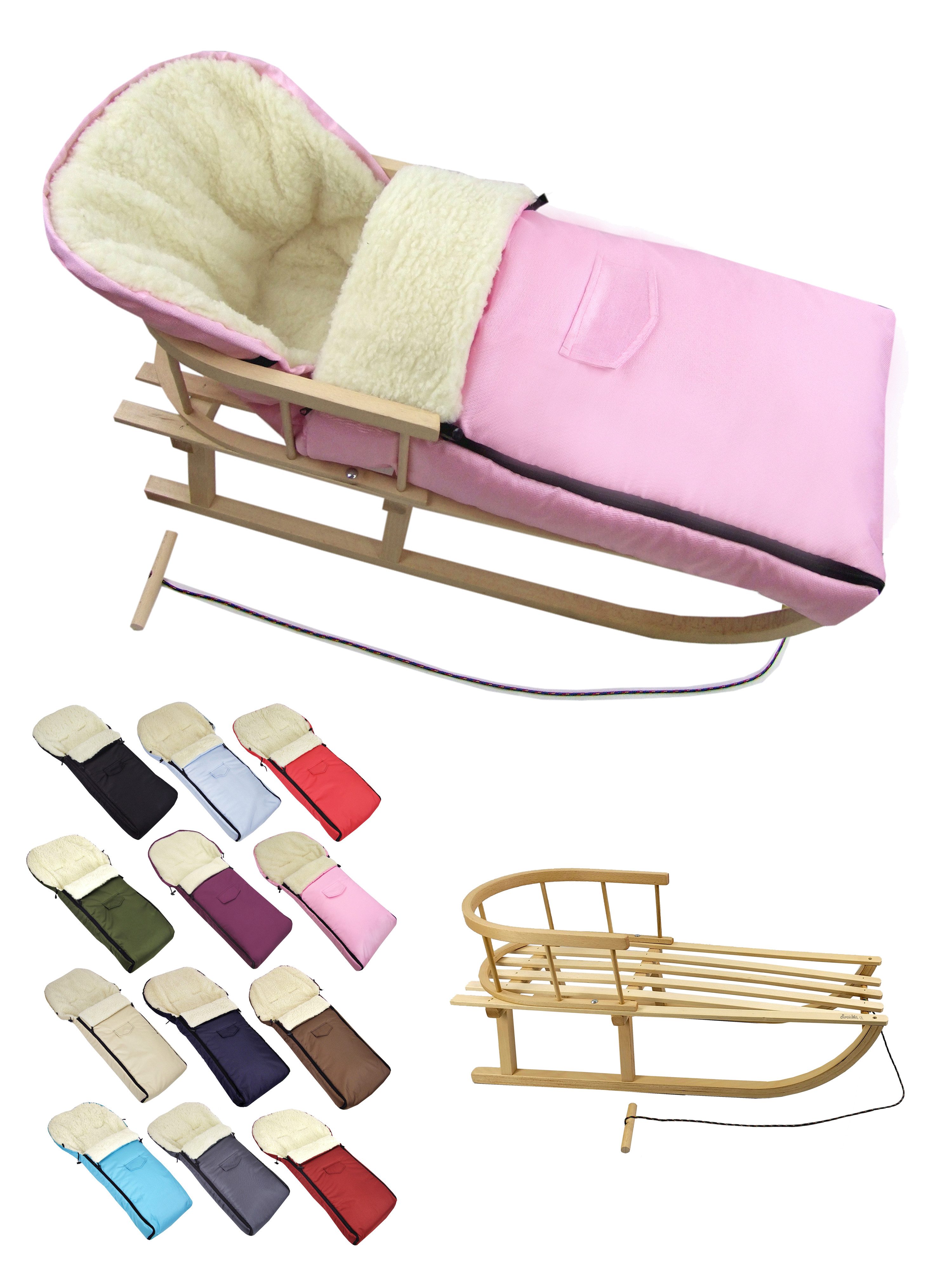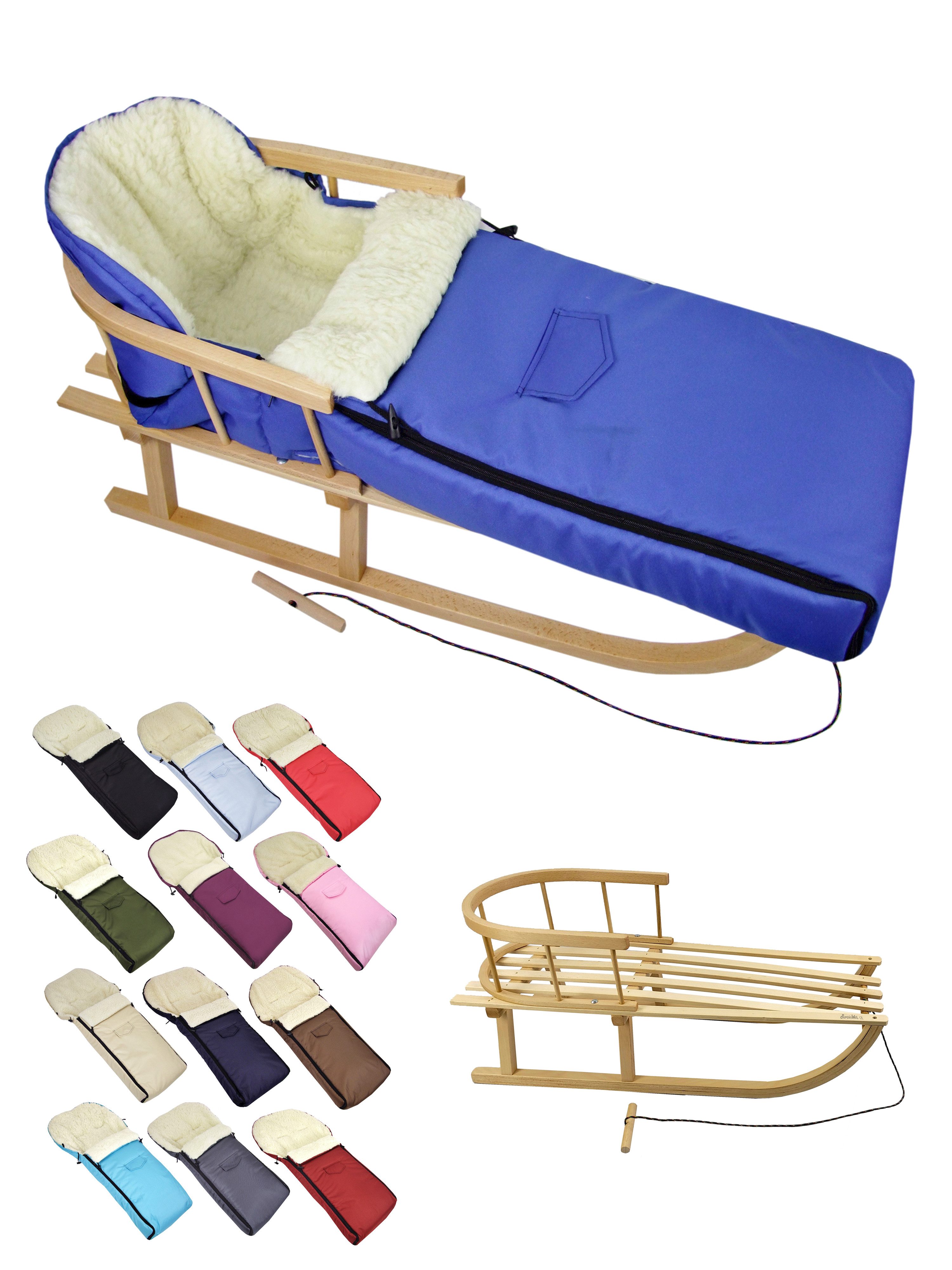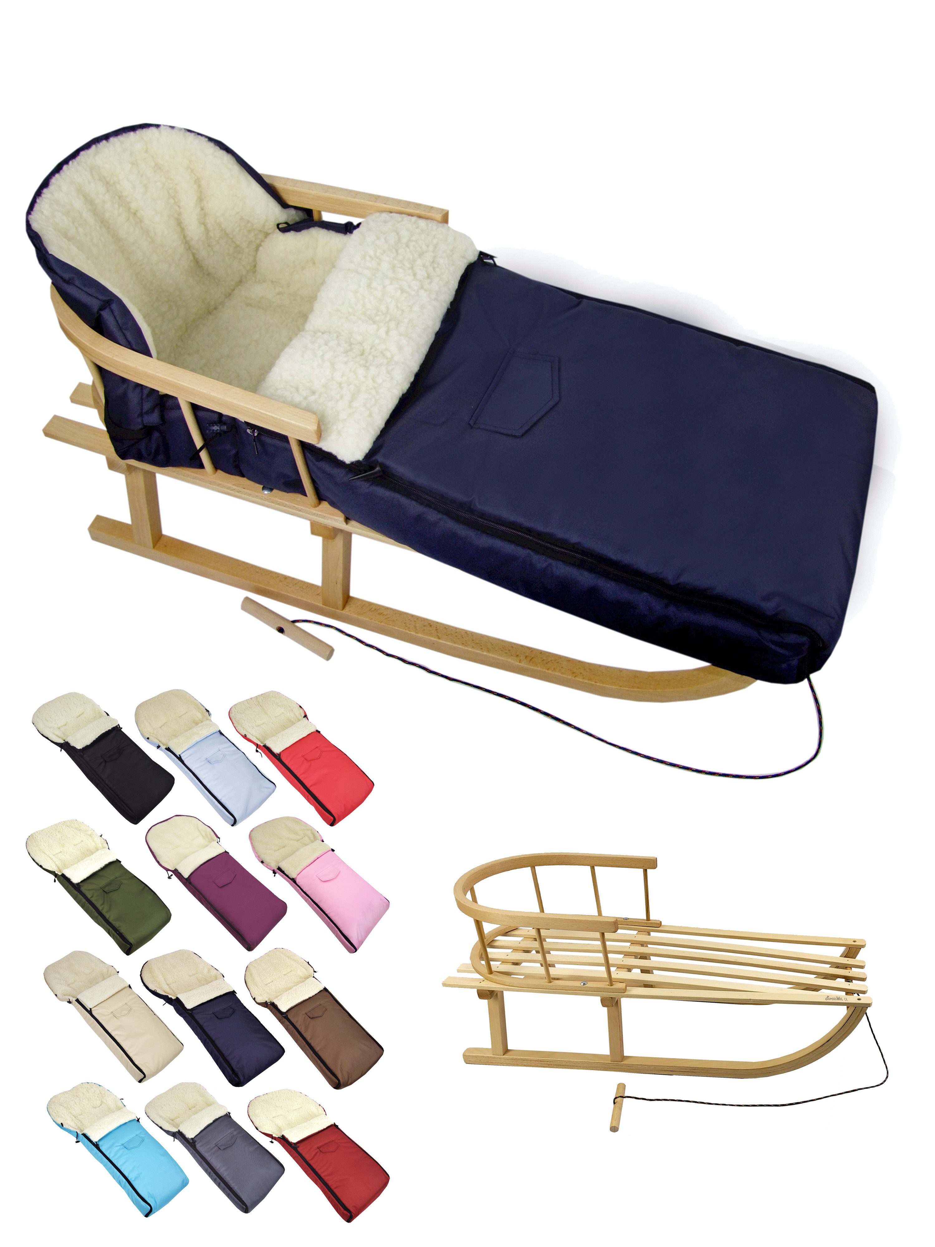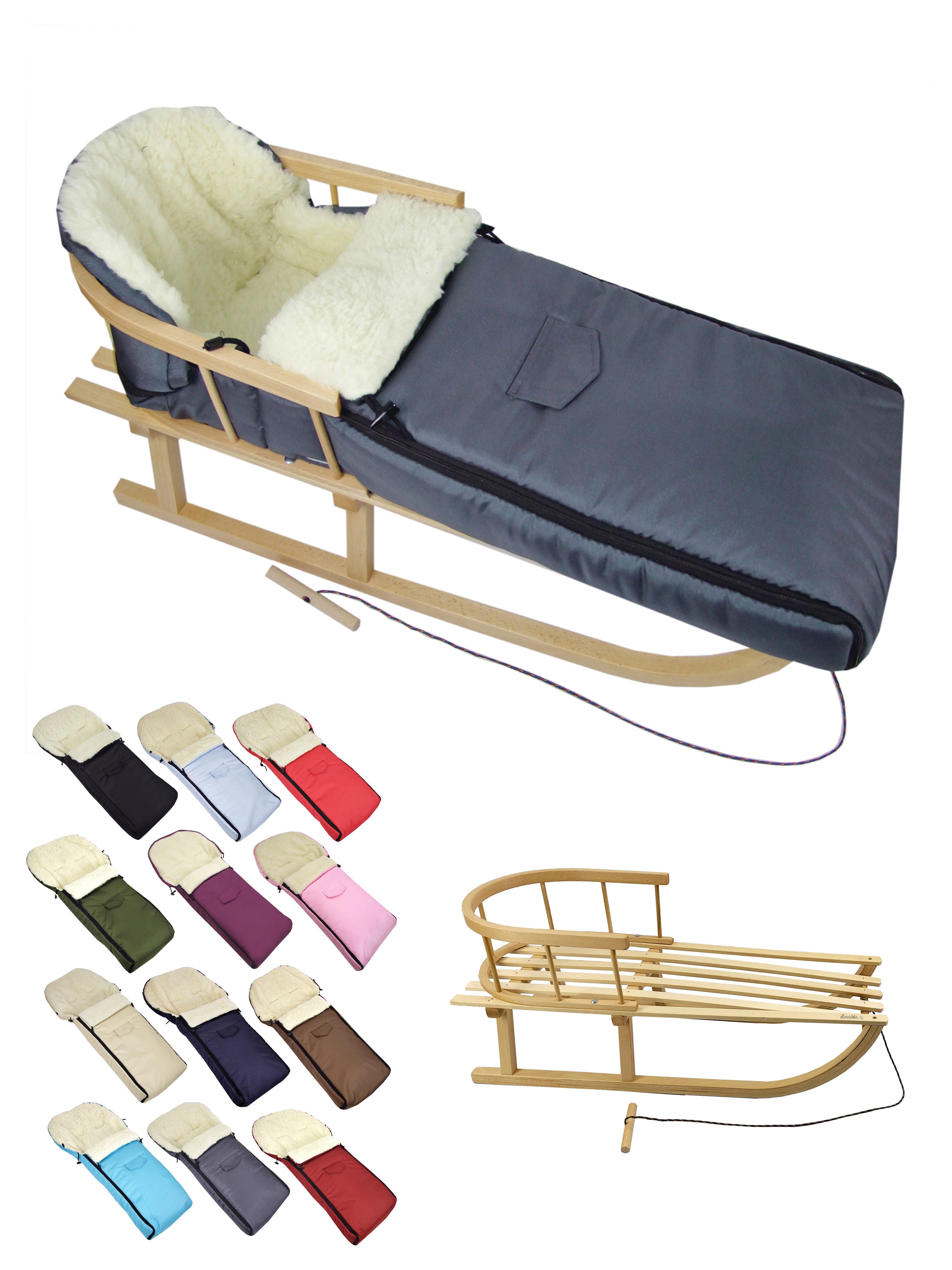 Ausstattung | Schlitten: mit Rückenlehne und Zugseil universaler Winterfußsack |