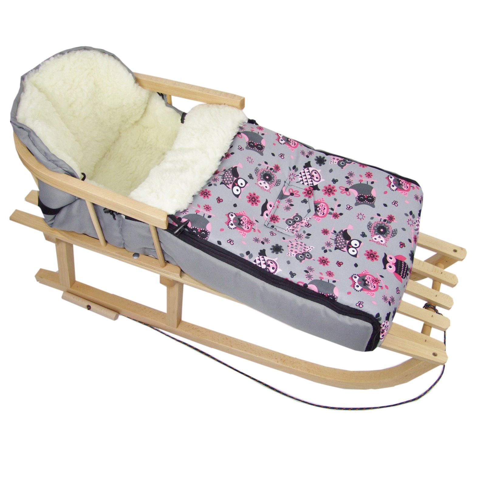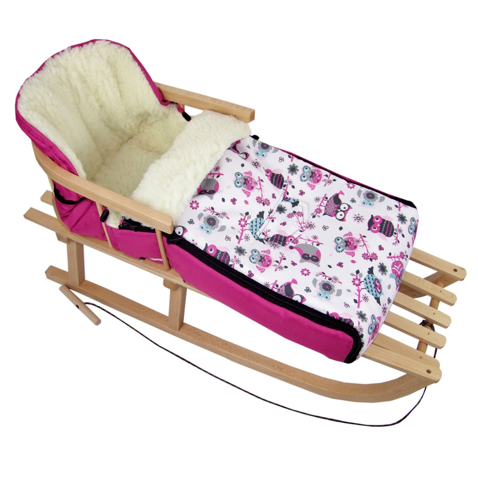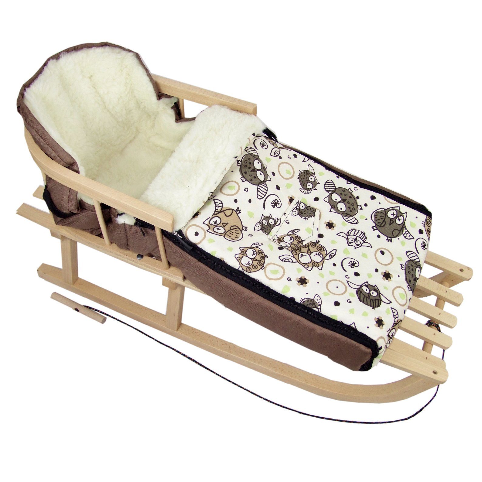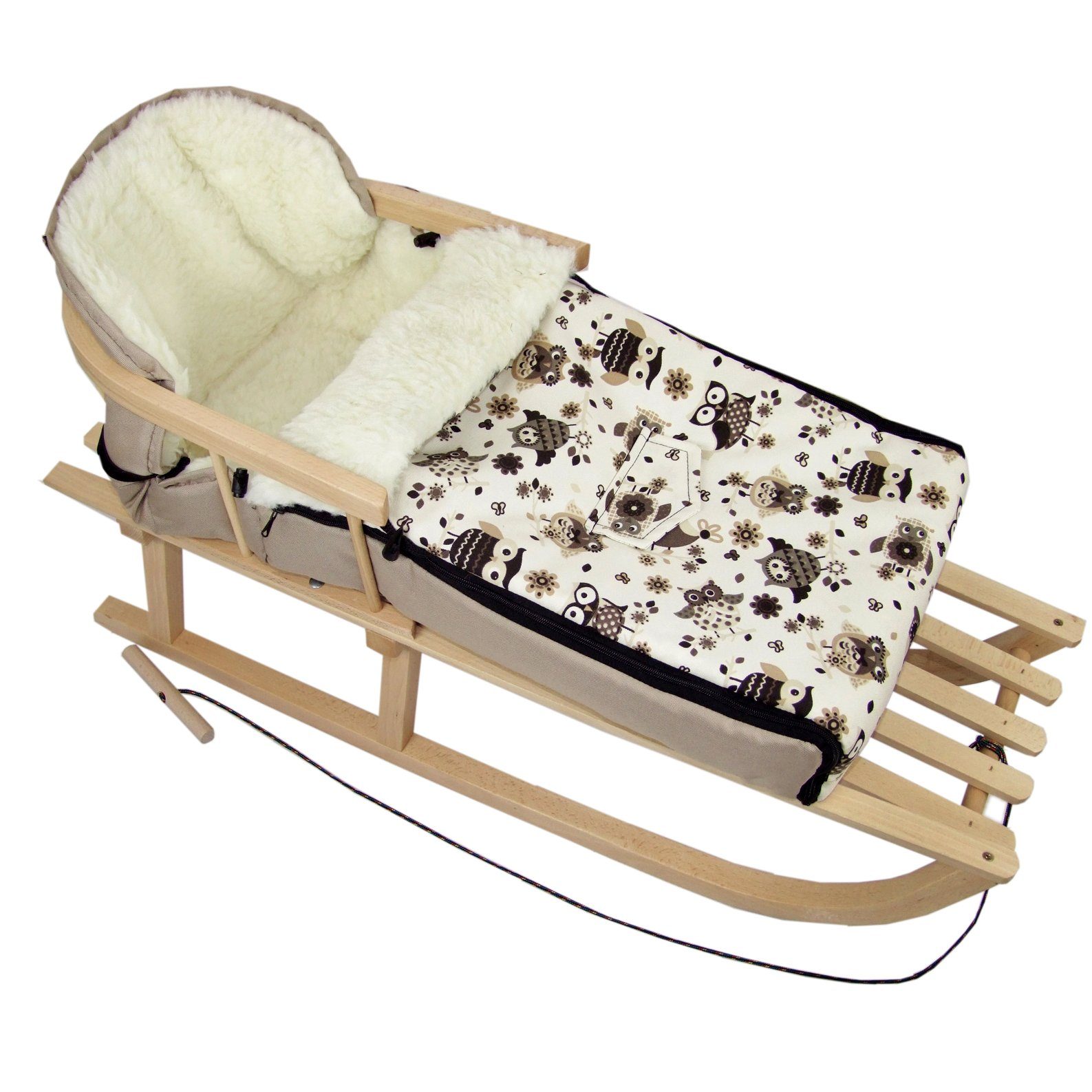 Details Material | Schlitten: aus Buchenholz, naturlackiert - Metallkufen, Bockstützen & Zugeisen pulverbeschichtet Fußsack: universaler Winterfußsack aus Lammwolle, passt zu jedem Jogger, Buggy oder Schlitten - Длина: 108 cm |