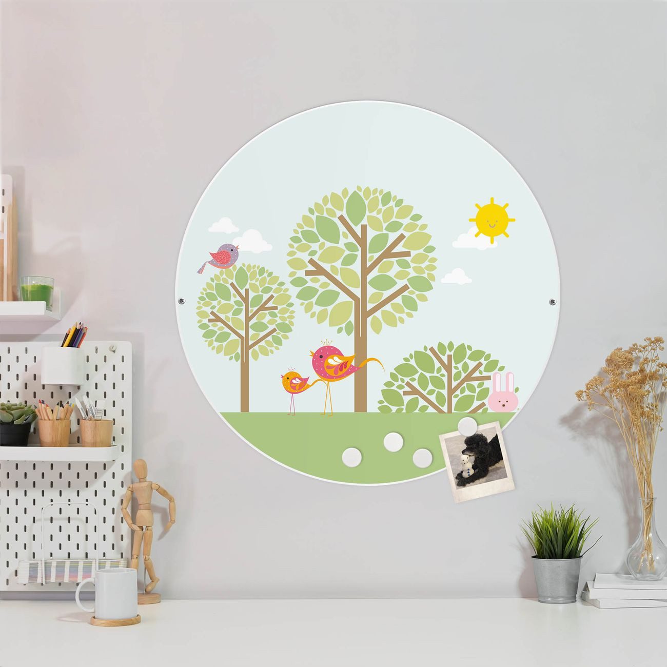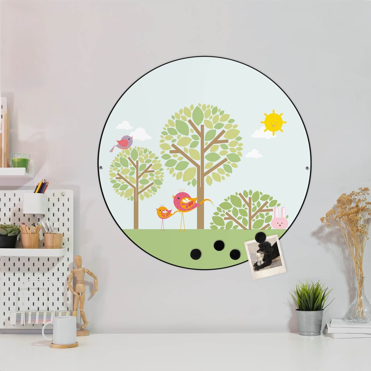banjado Magnettafel Stahl Rund Drei Bäume, (inkl. 4 Magnete, Runde Stahlmagnettafel)