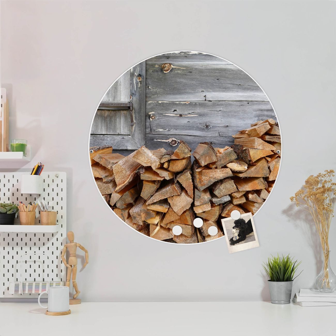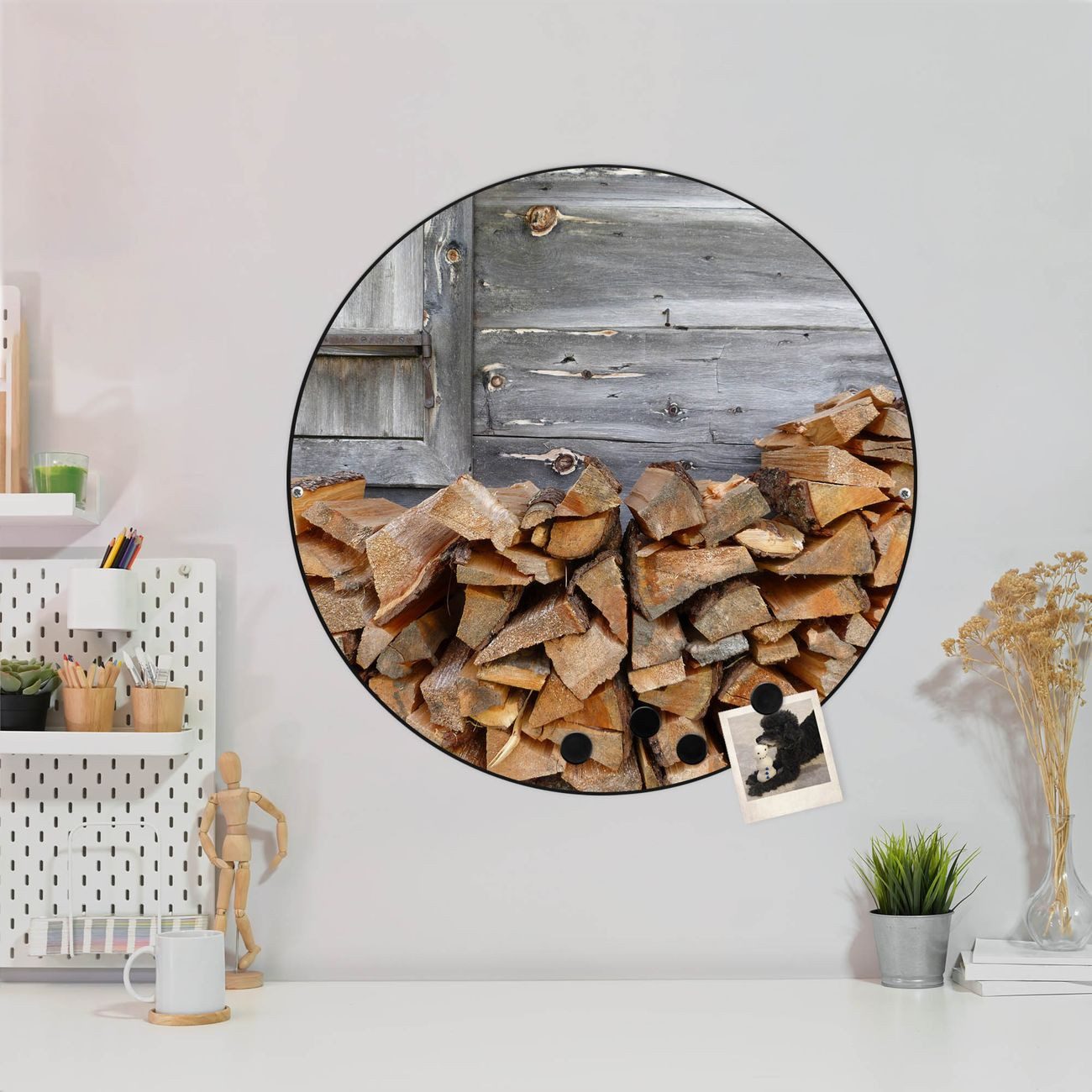 banjado Magnettafel Stahl Rund Feuerholz, (inkl. 4 Magnete, Runde Stahlmagnettafel)