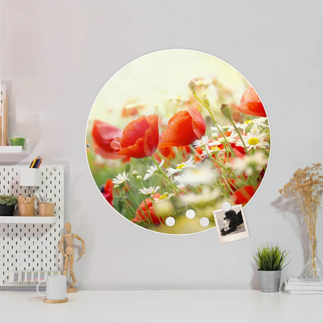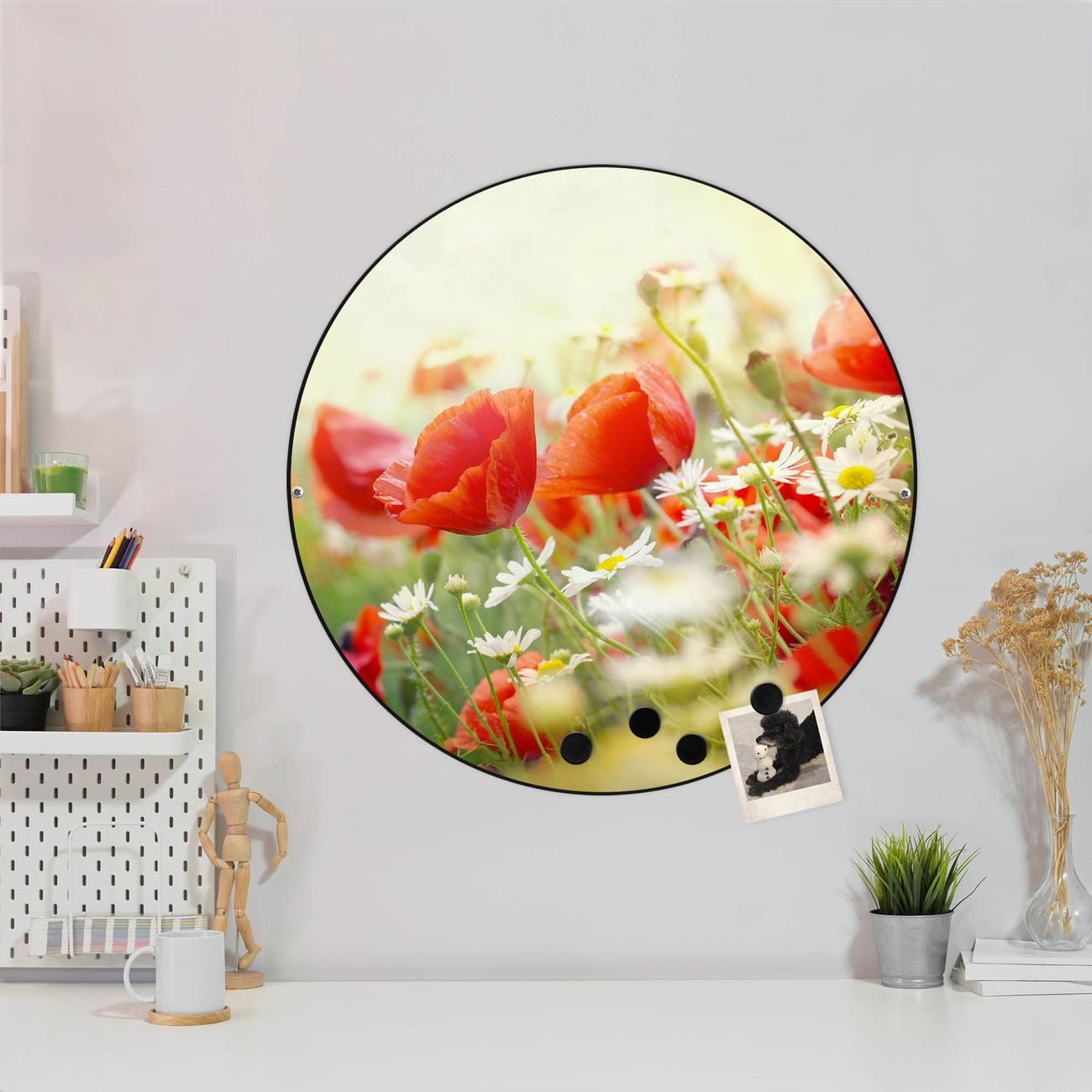 banjado Magnettafel Stahl Rund Kamille Und Mohn, (inkl. 4 Magnete, Runde Stahlmagnettafel)