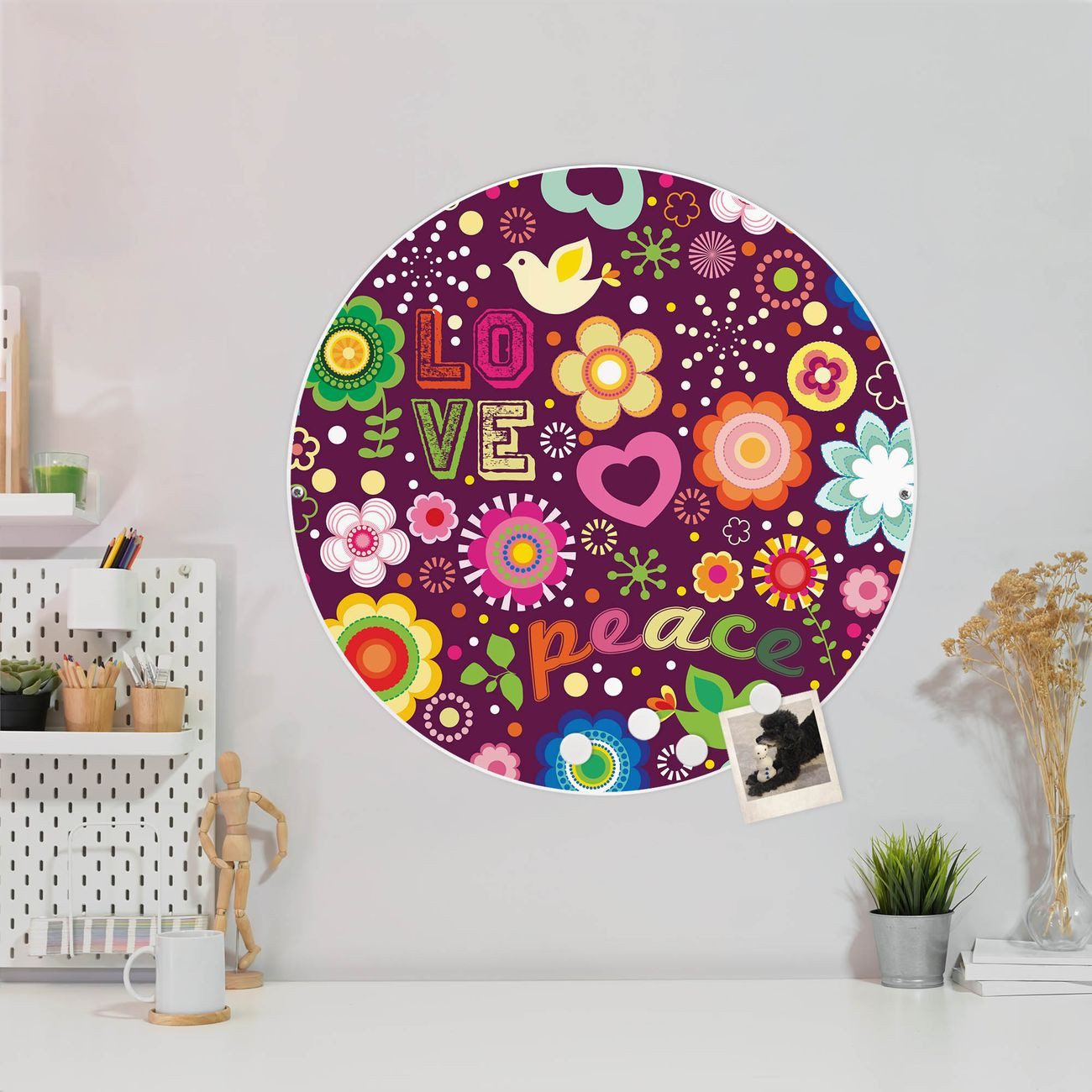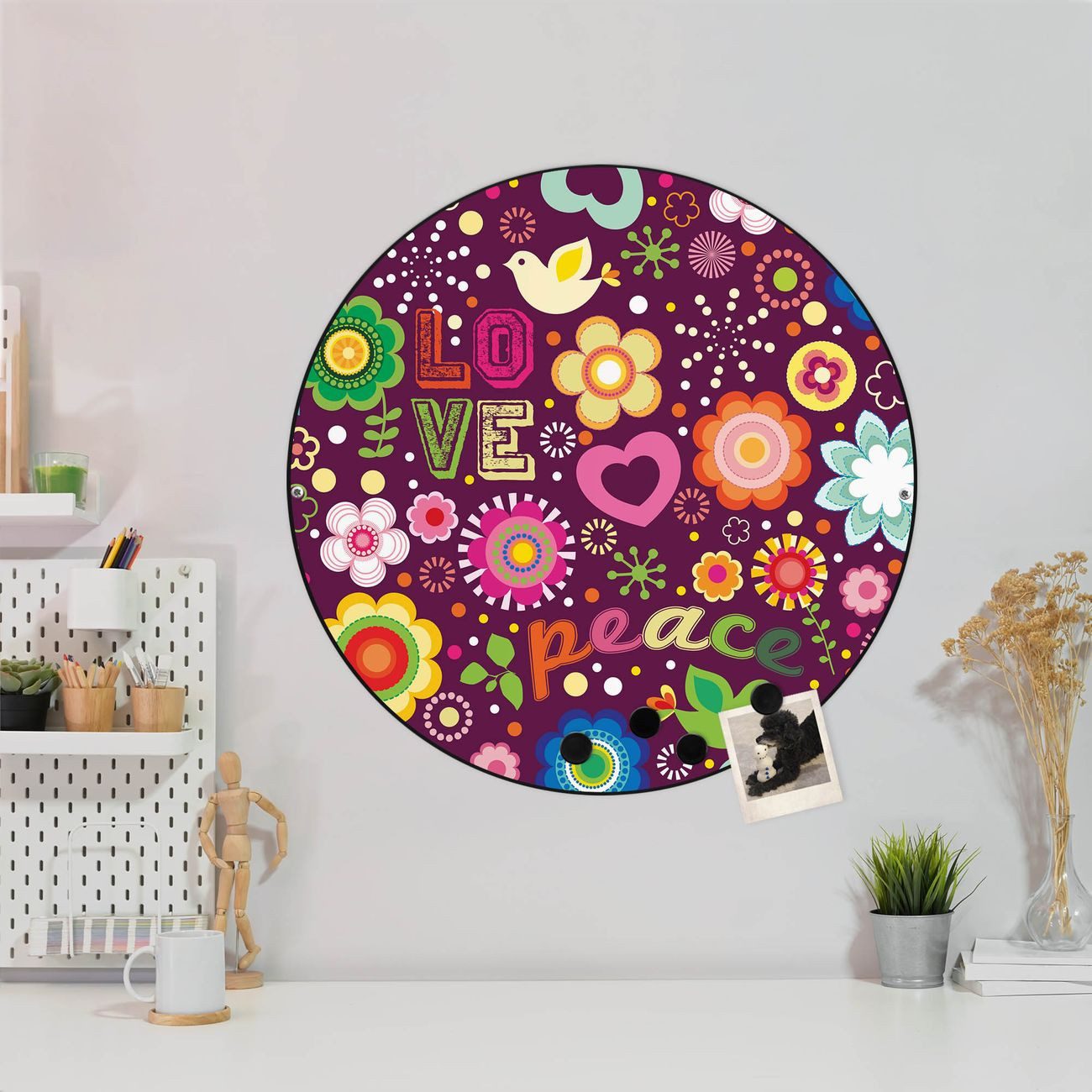 banjado Magnettafel Stahl Rund Love and Peace, (inkl. 4 Magnete, Runde Stahlmagnettafel)