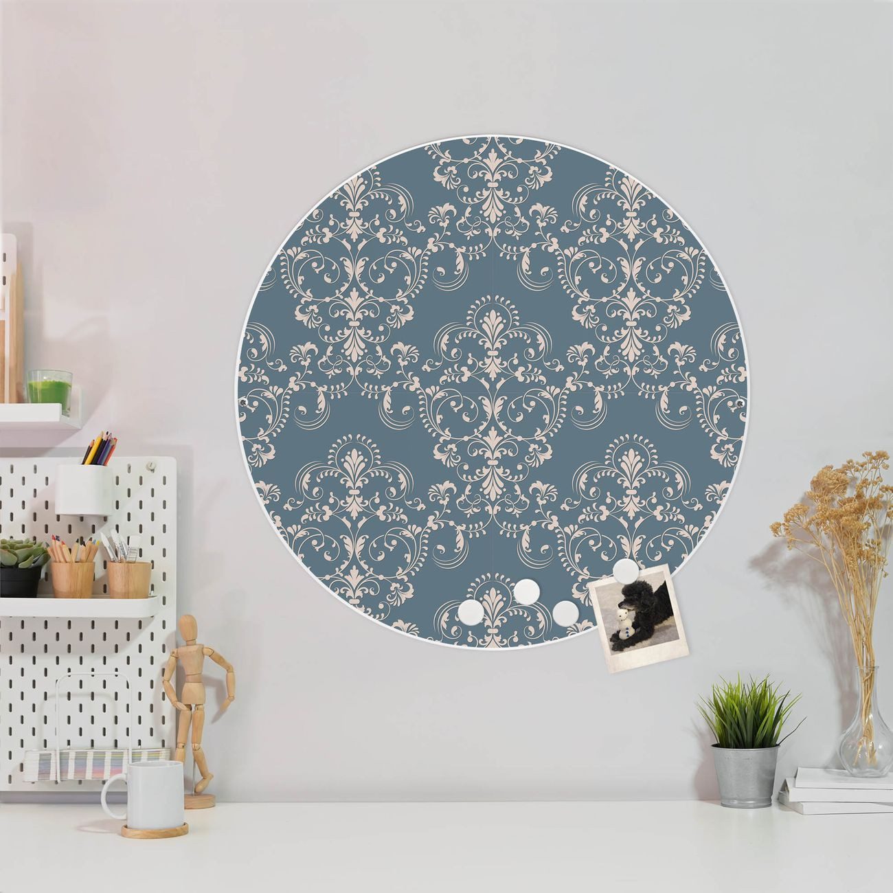 banjado Magnettafel Stahl Rund Royal Creme Blau, (inkl. 4 Magnete, Runde Stahlmagnettafel)