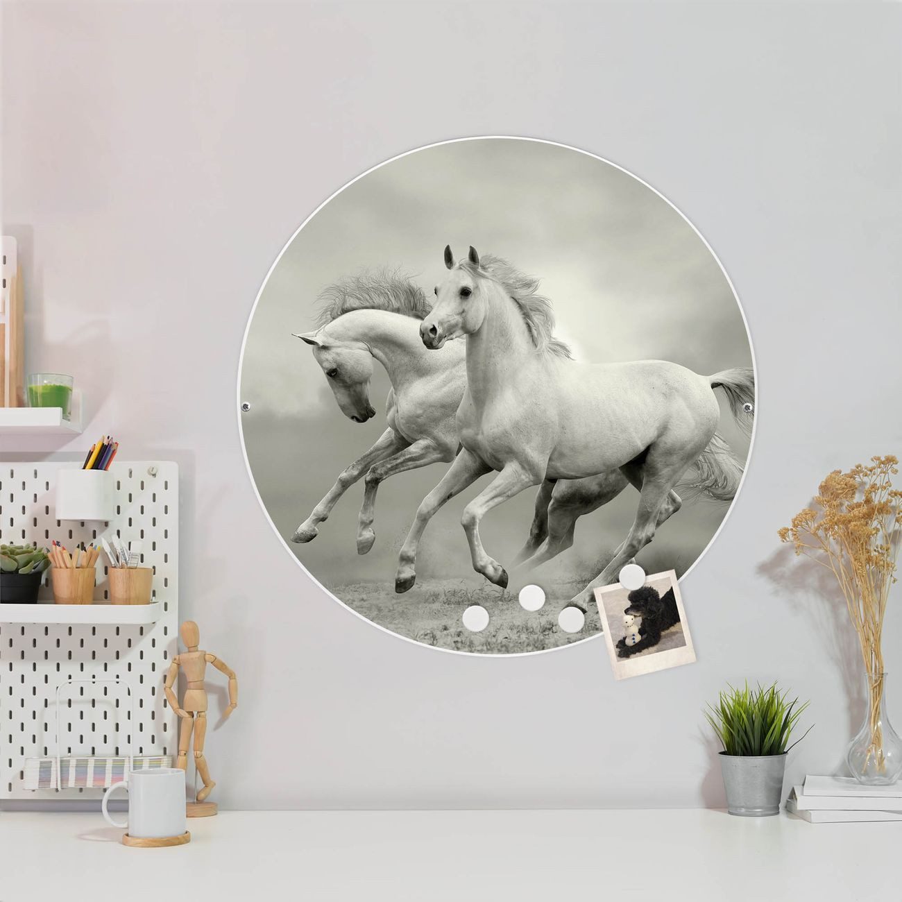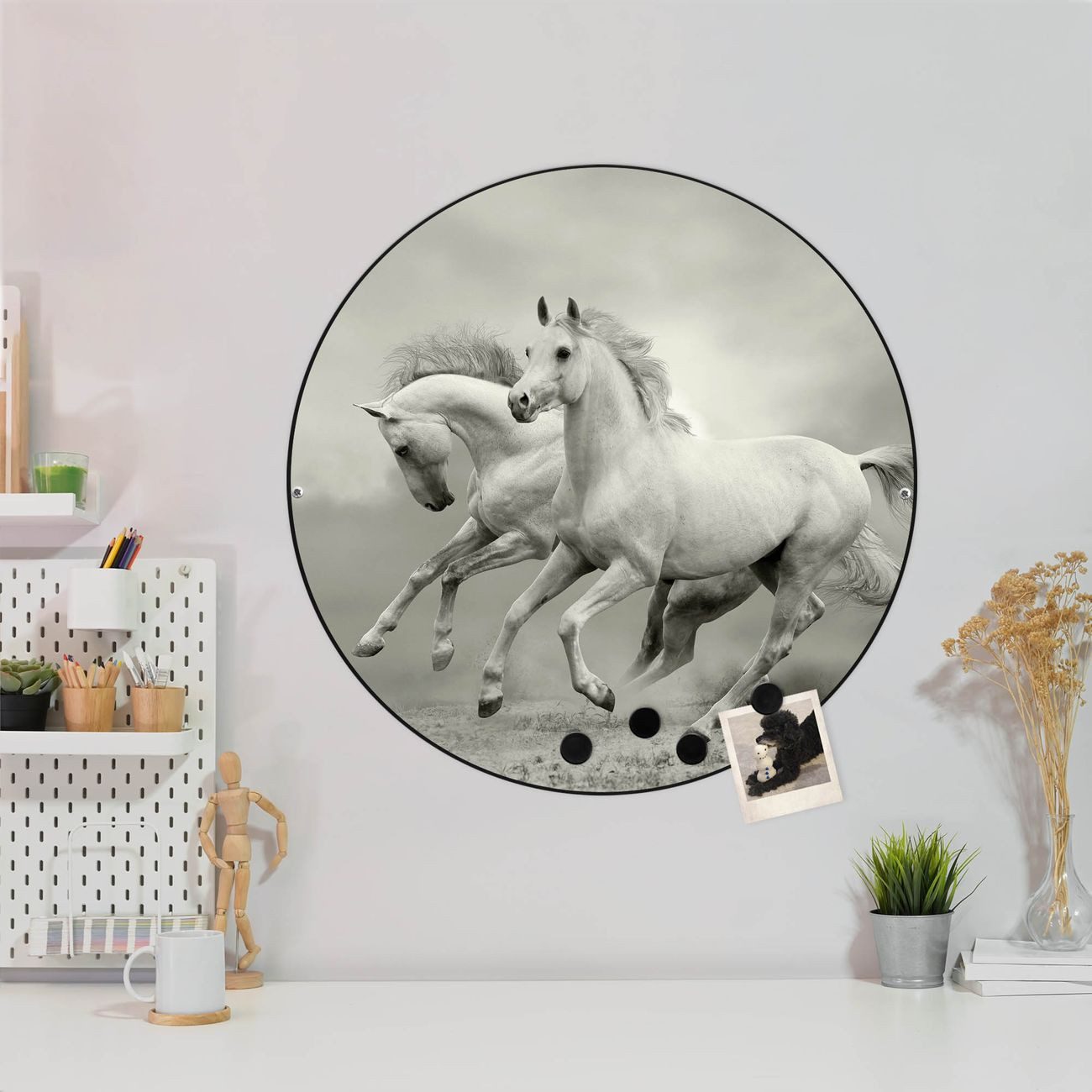 banjado Magnettafel Stahl Rund Wilde Pferde SW, (inkl. 4 Magnete, Runde Stahlmagnettafel)