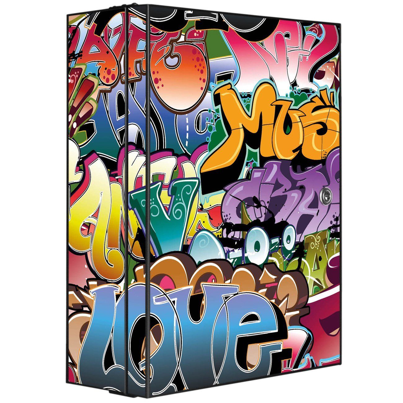 banjado Medizinschrank Stahl Graffiti (abschließbar, 3 große und 2 kleine Fächer) 35 x 46 x 15cm