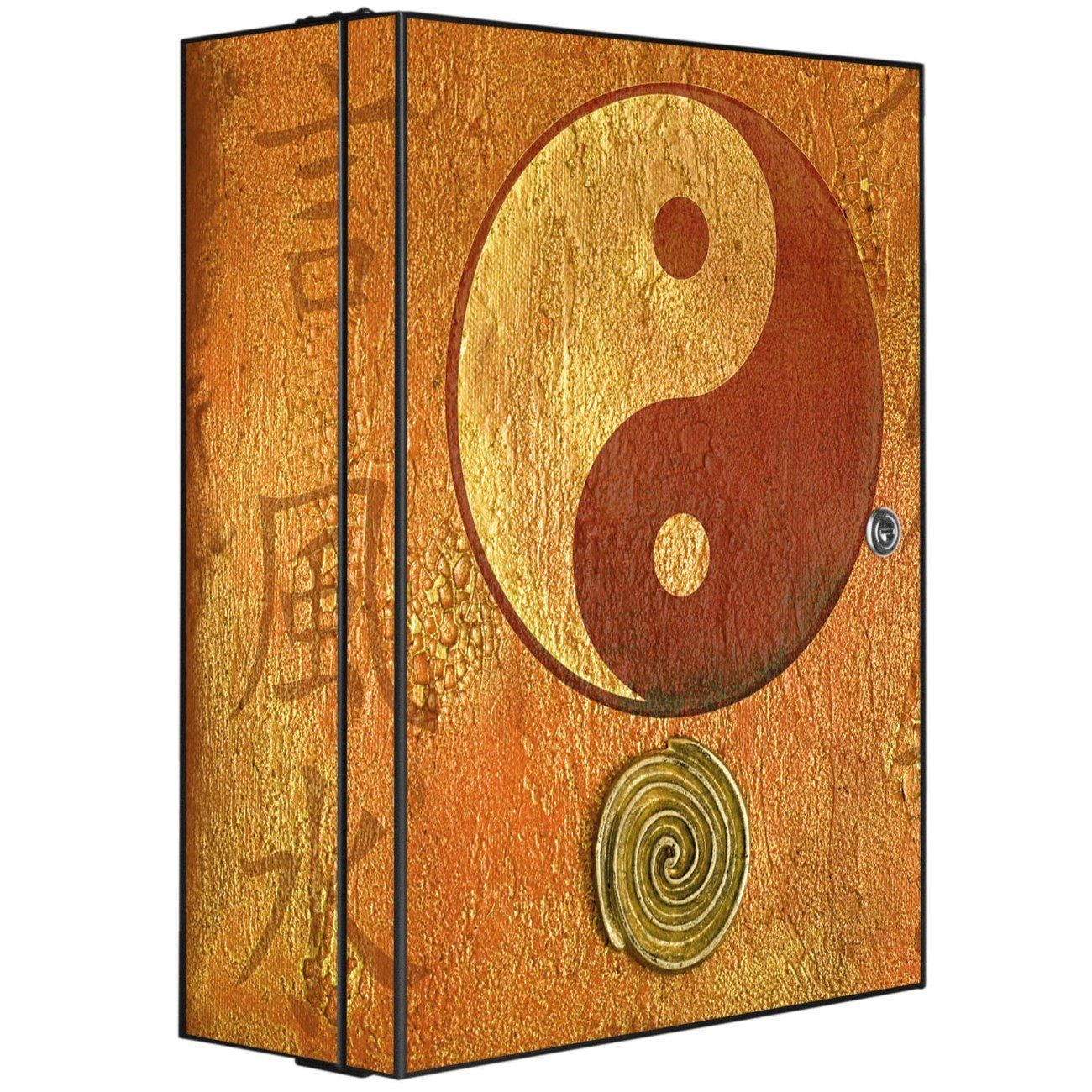 banjado Medizinschrank Stahl Yin Yang (abschließbar, 3 große und 2 kleine Fächer) 35 x 46 x 15cm