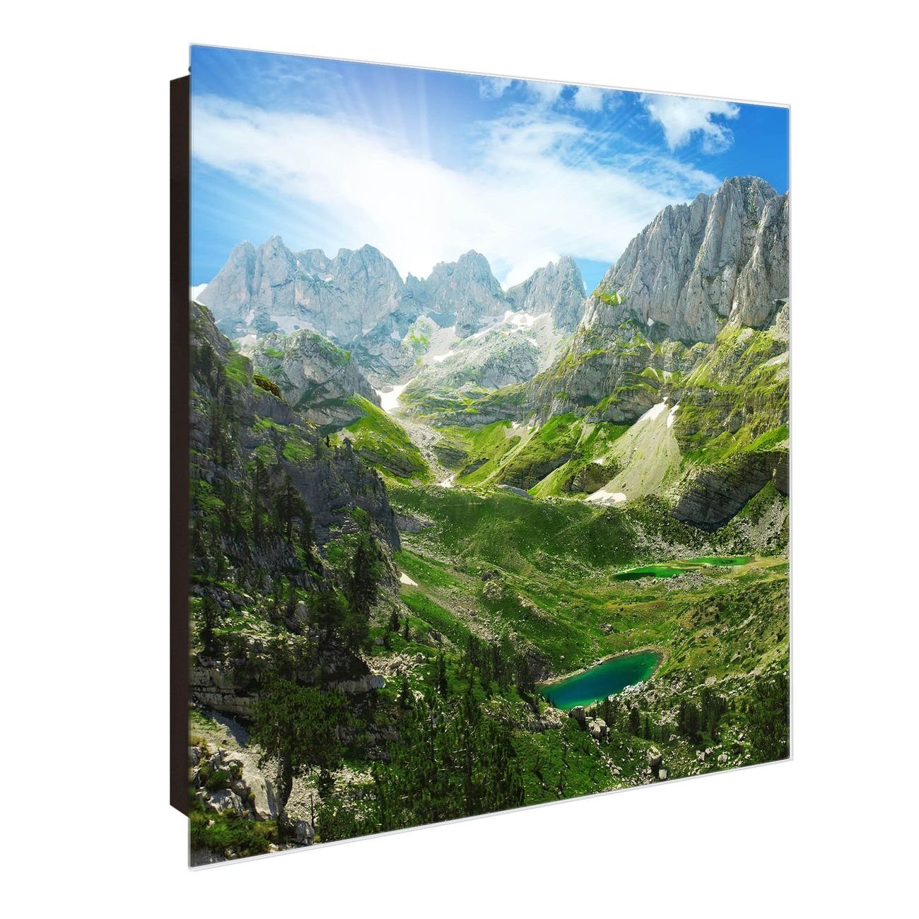 banjado Schlüsselkasten Glas Bergsee Alpen (Stahl Gehäuse, mit 50 Haken), 30 x 30 x 5 cm