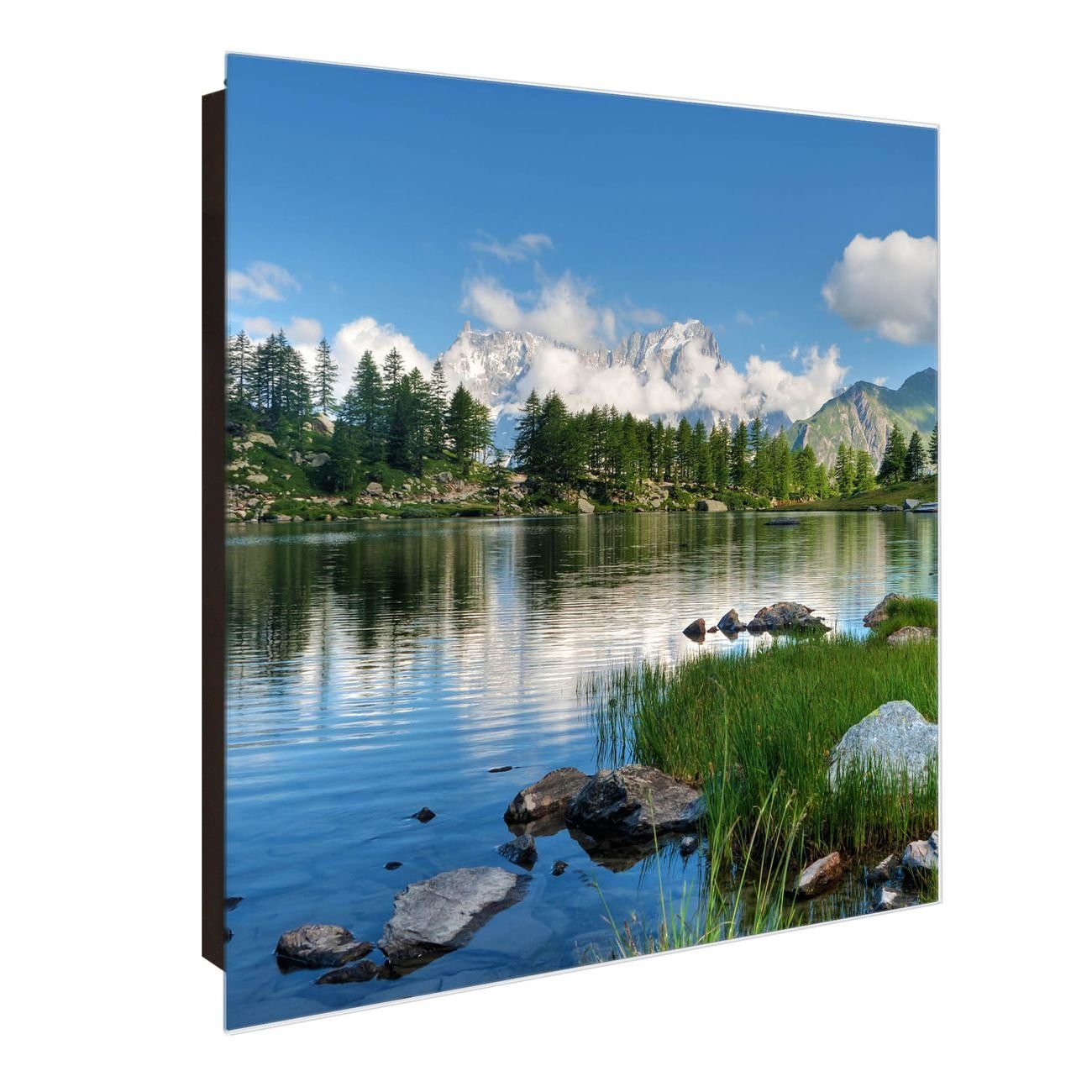 banjado Schlüsselkasten Glas Gebirgssee (Stahl Gehäuse, mit 50 Haken), 30 x 30 x 5 cm