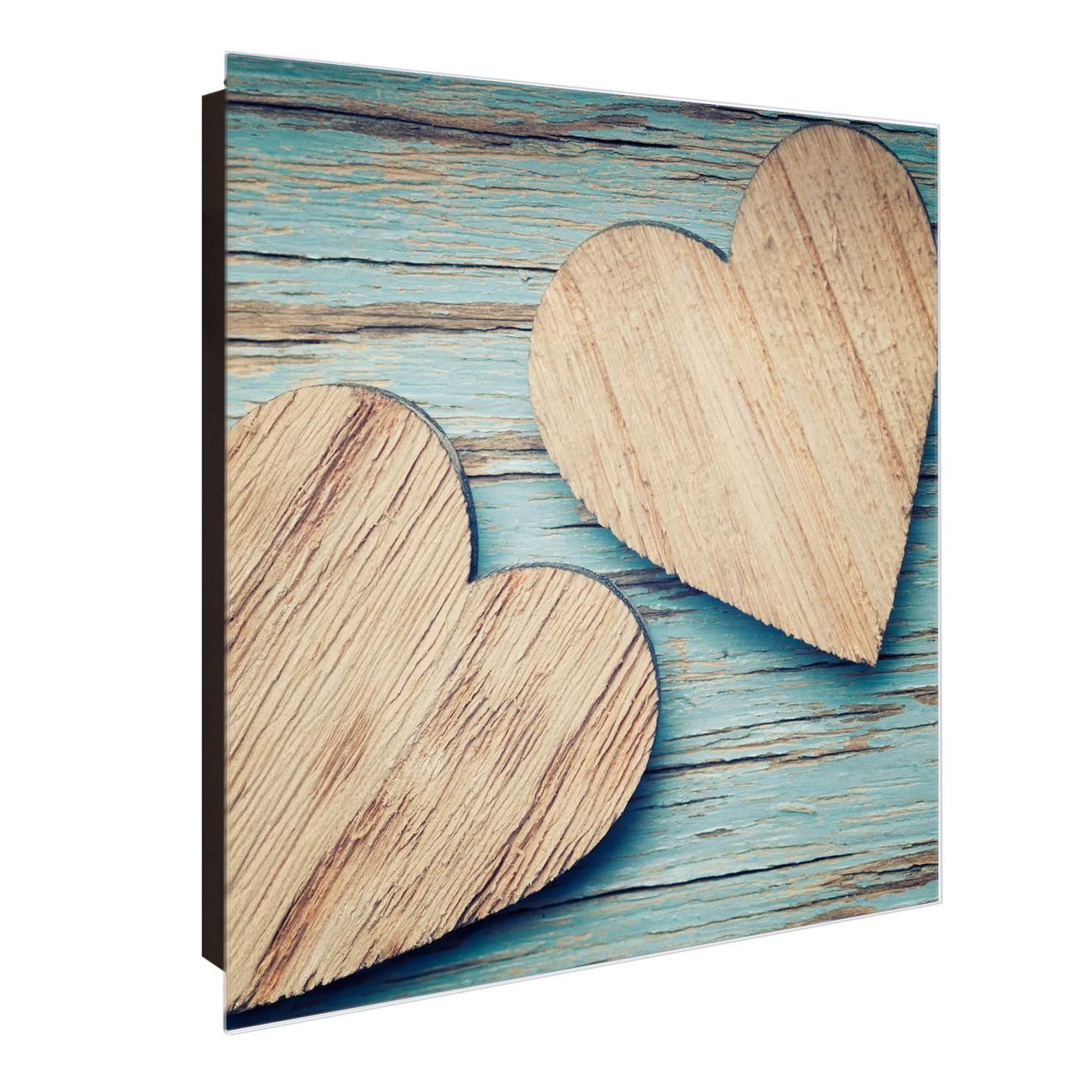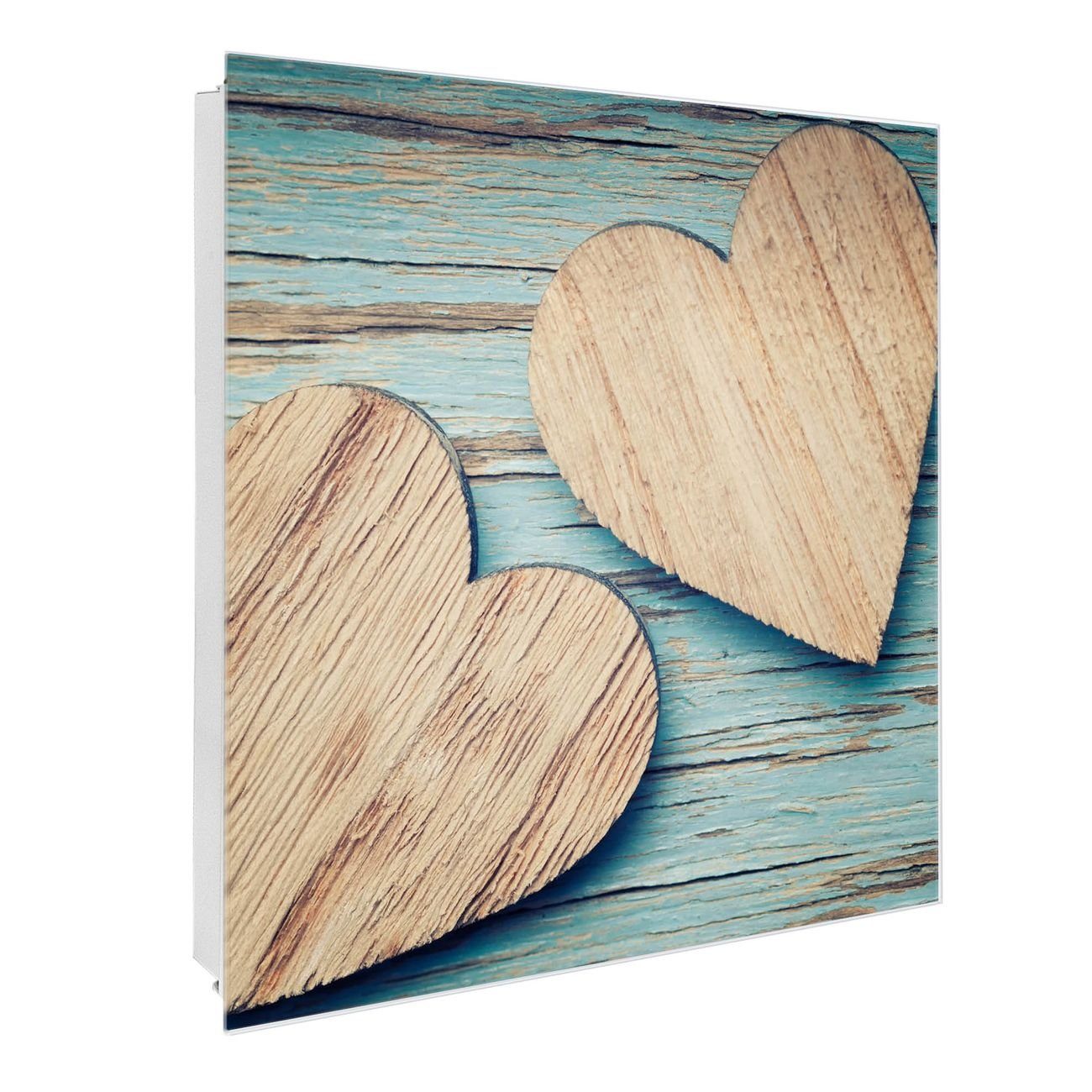 banjado Schlüsselkasten Glas Holz Herzen (Stahl Gehäuse, mit 50 Haken), 30 x 30 x 5 cm