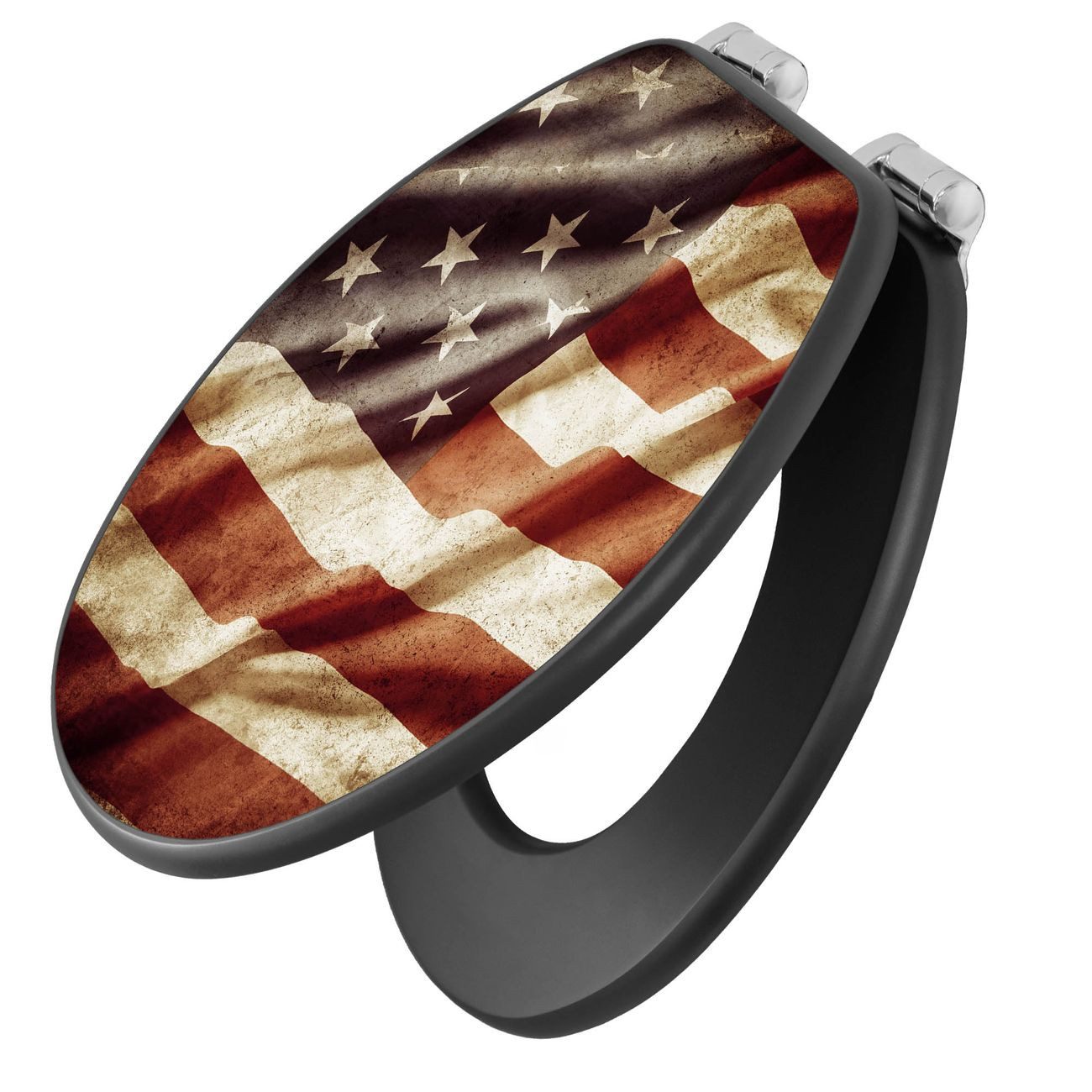 banjado WC-Sitz Anthrazit Motiv United States (umweltfreundliches Material, integrierte Absenkautomatik), 46,5 x 38 x 5 cm