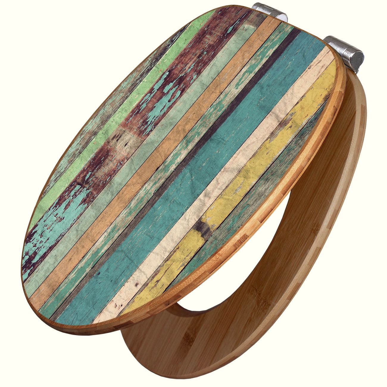 banjado WC-Sitz aus Bambus Motiv Bunte Bretterwand (umweltfreundliches Material, integrierte Absenkautomatik), 45,8 x 37,5 x 5 cm