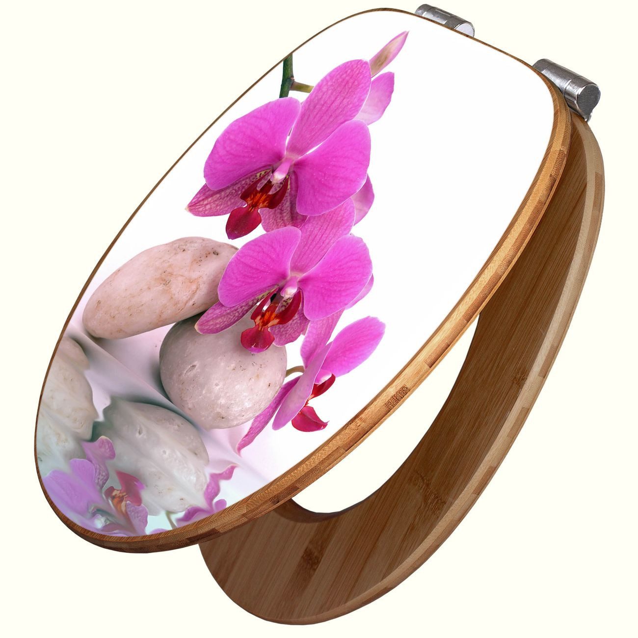 banjado WC-Sitz aus Bambus Motiv Orchidee (umweltfreundliches Material, integrierte Absenkautomatik), 45,8 x 37,5 x 5 cm