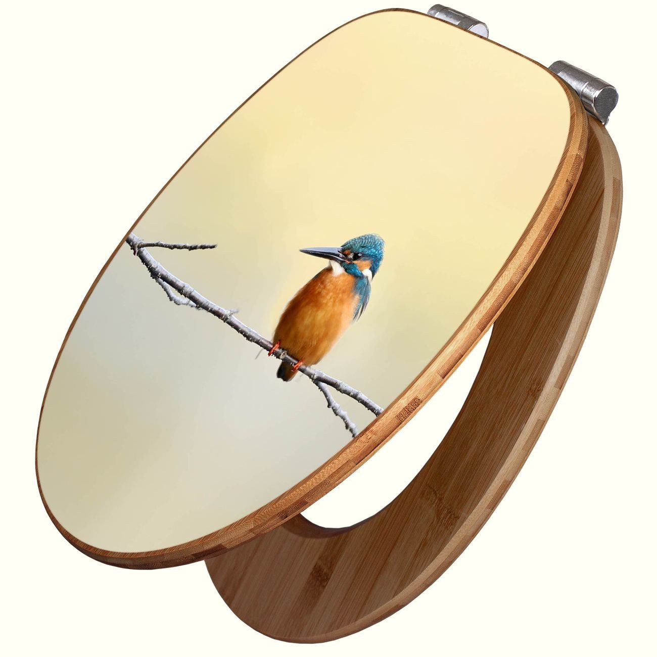 banjado WC-Sitz aus Bambus Motiv Pause (umweltfreundliches Material, integrierte Absenkautomatik), 45,8 x 37,5 x 5 cm