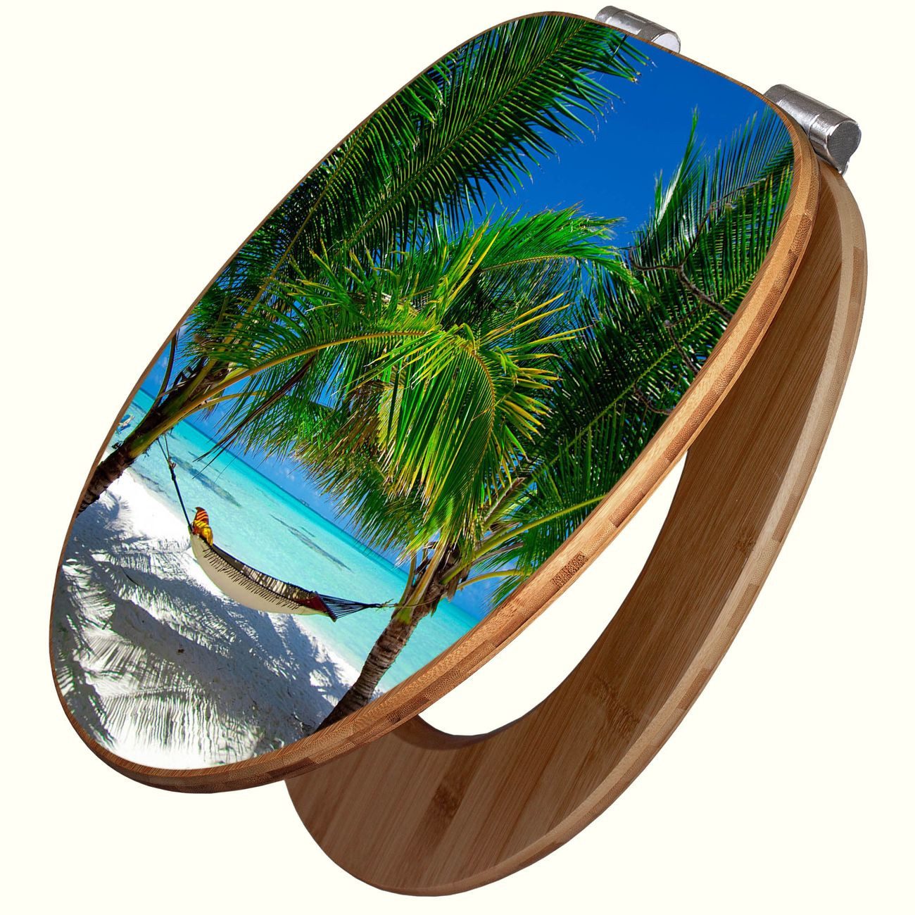 banjado WC-Sitz aus Bambus Motiv Strand (umweltfreundliches Material, integrierte Absenkautomatik), 45,8 x 37,5 x 5 cm