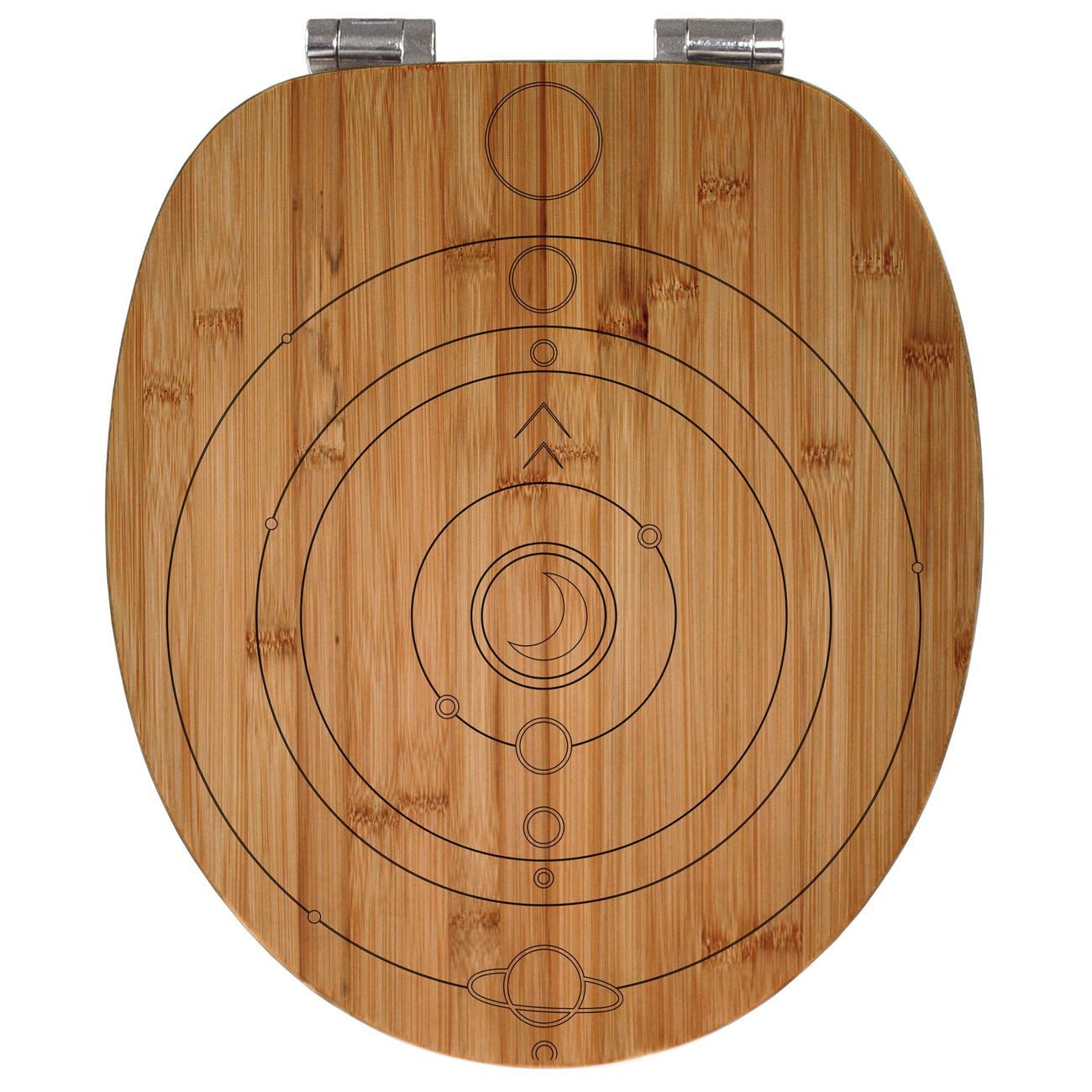 banjado WC-Sitz Bambus mit Gravur Astronomie 3 (umweltfreundliches Material, integrierte Absenkautomatik), 45,8 x 37,5 x 5 cm