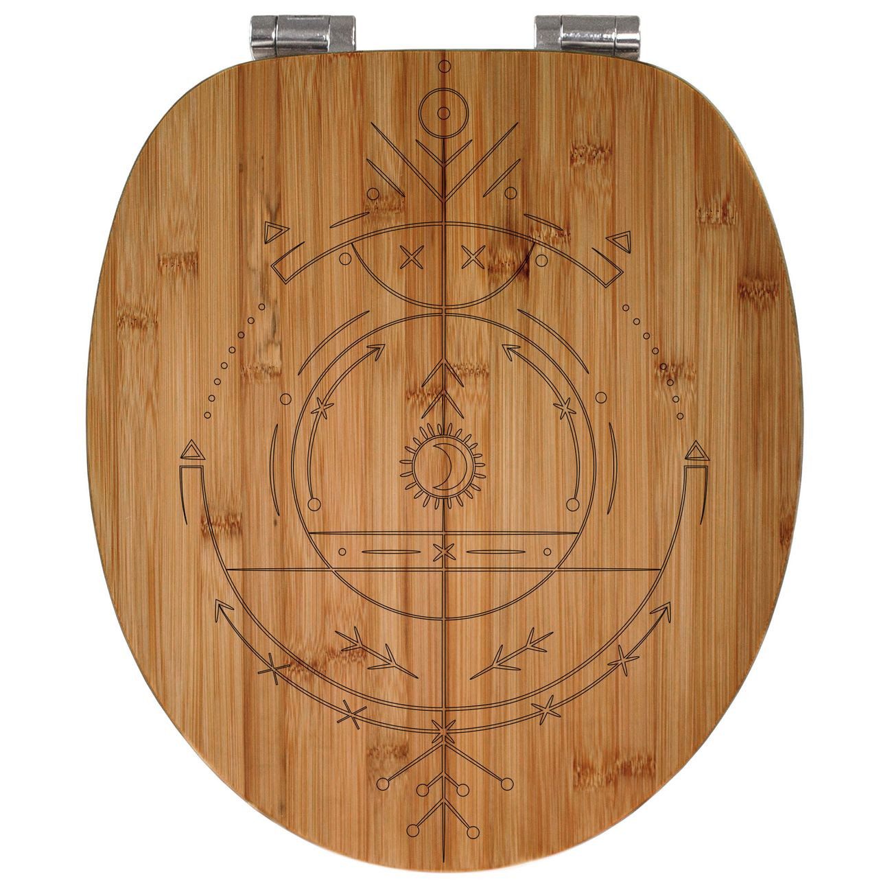 banjado WC-Sitz Bambus mit Gravur Astronomie 4 (umweltfreundliches Material, integrierte Absenkautomatik), 45,8 x 37,5 x 5 cm
