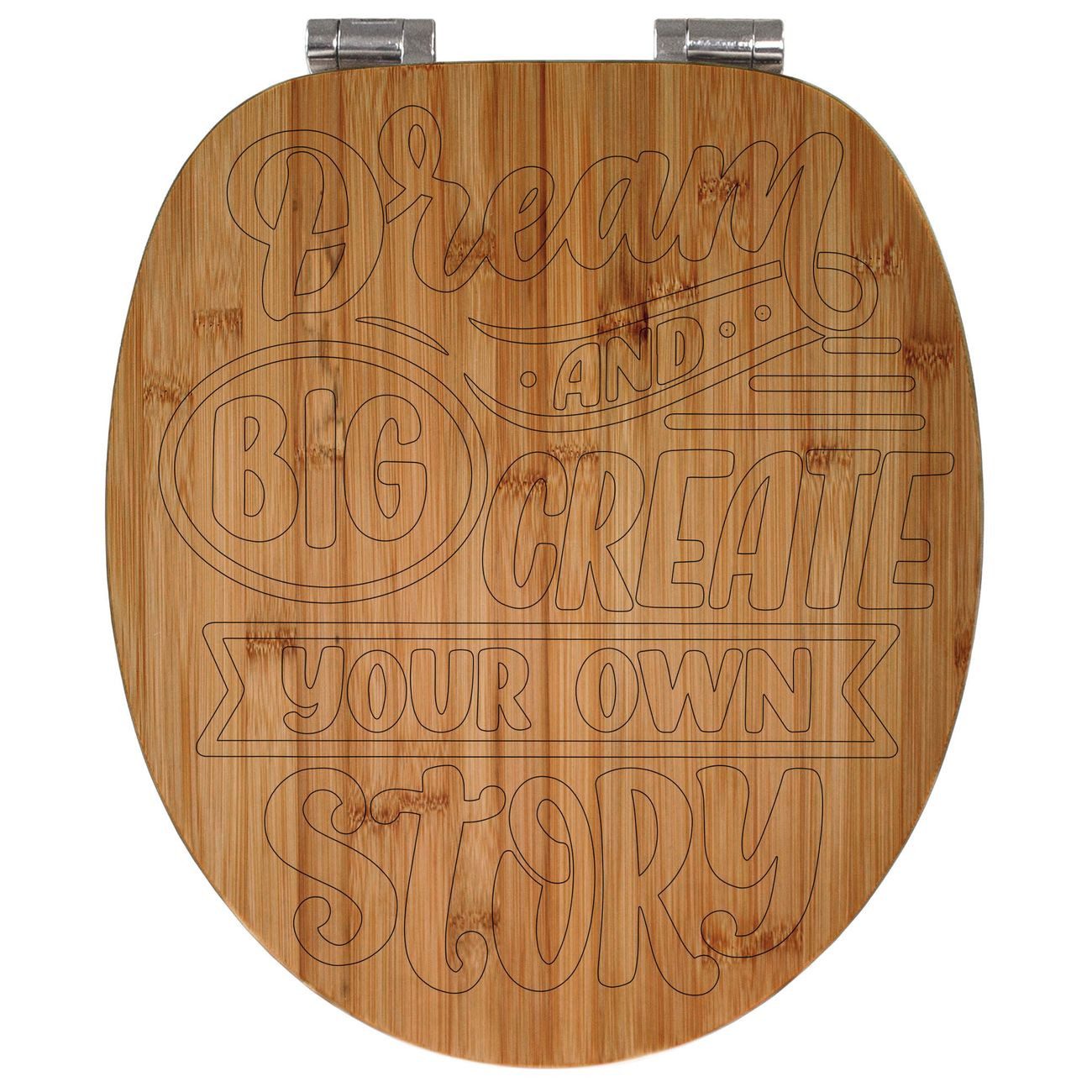 banjado WC-Sitz Bambus mit Gravur Dream Big (umweltfreundliches Material, integrierte Absenkautomatik), 45,8 x 37,5 x 5 cm