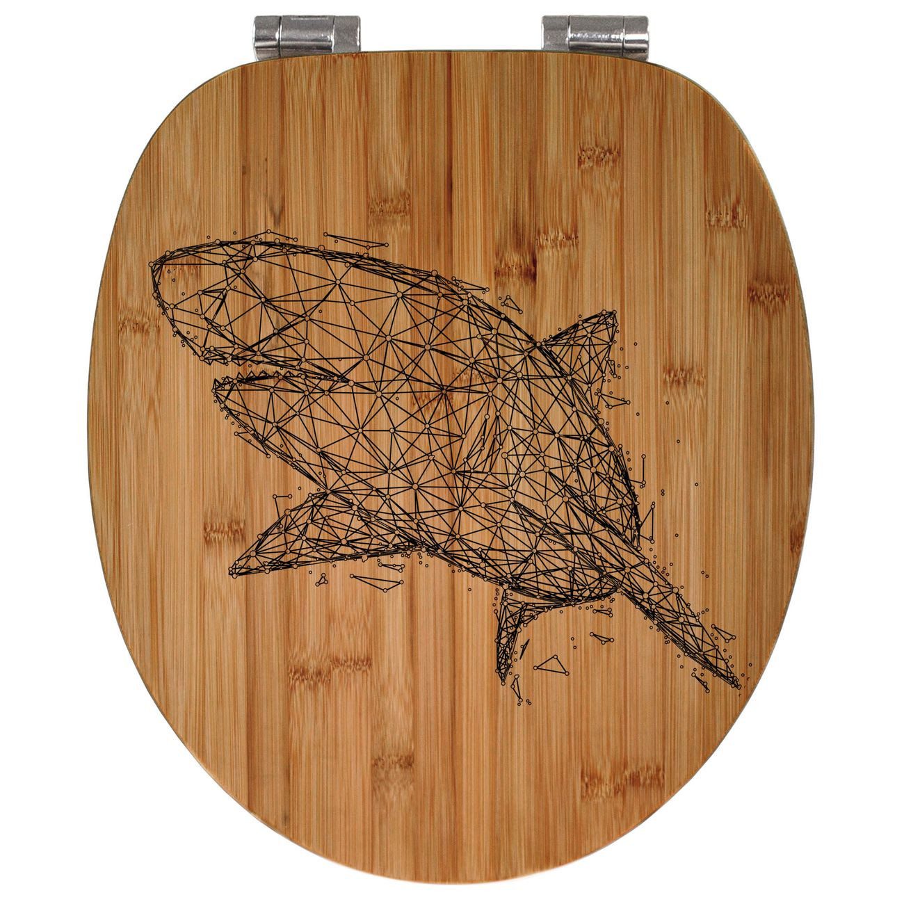 banjado WC-Sitz Bambus mit Gravur Hai abstrakt (umweltfreundliches Material, integrierte Absenkautomatik), 45,8 x 37,5 x 5 cm