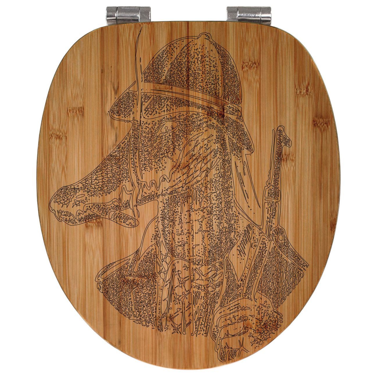 banjado WC-Sitz Bambus mit Gravur Herr Krokodil (umweltfreundliches Material, integrierte Absenkautomatik), 45,8 x 37,5 x 5 cm