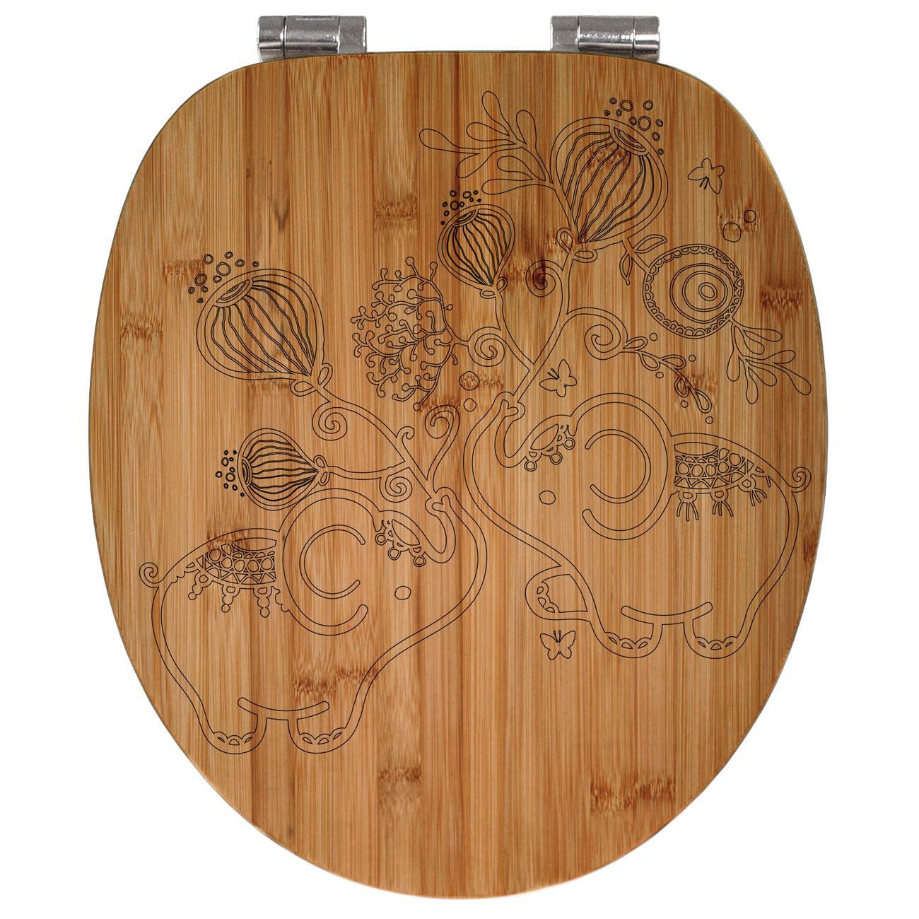 banjado WC-Sitz Bambus mit Gravur Indische Elefanten (umweltfreundliches Material, integrierte Absenkautomatik), 45,8 x 37,5 x 5 cm