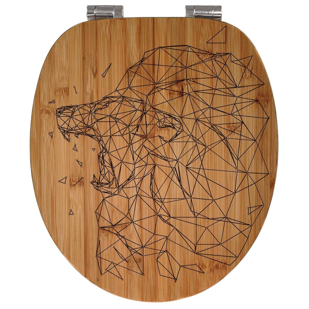 banjado WC-Sitz Bambus mit Gravur Löwe abstrakt (umweltfreundliches Material, integrierte Absenkautomatik), 45,8 x 37,5 x 5 cm