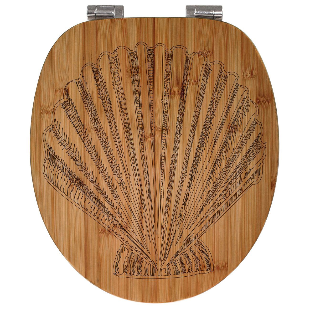 banjado WC-Sitz Bambus mit Gravur Muschel 1 (umweltfreundliches Material, integrierte Absenkautomatik), 45,8 x 37,5 x 5 cm