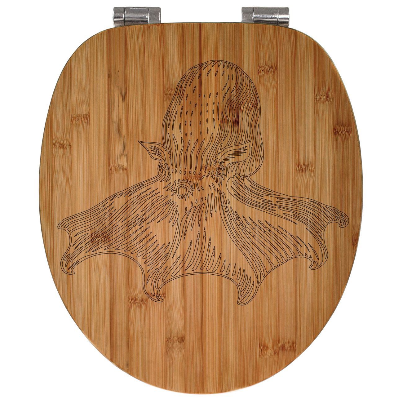 banjado WC-Sitz Bambus mit Gravur Oktopus 2 (umweltfreundliches Material, integrierte Absenkautomatik), 45,8 x 37,5 x 5 cm