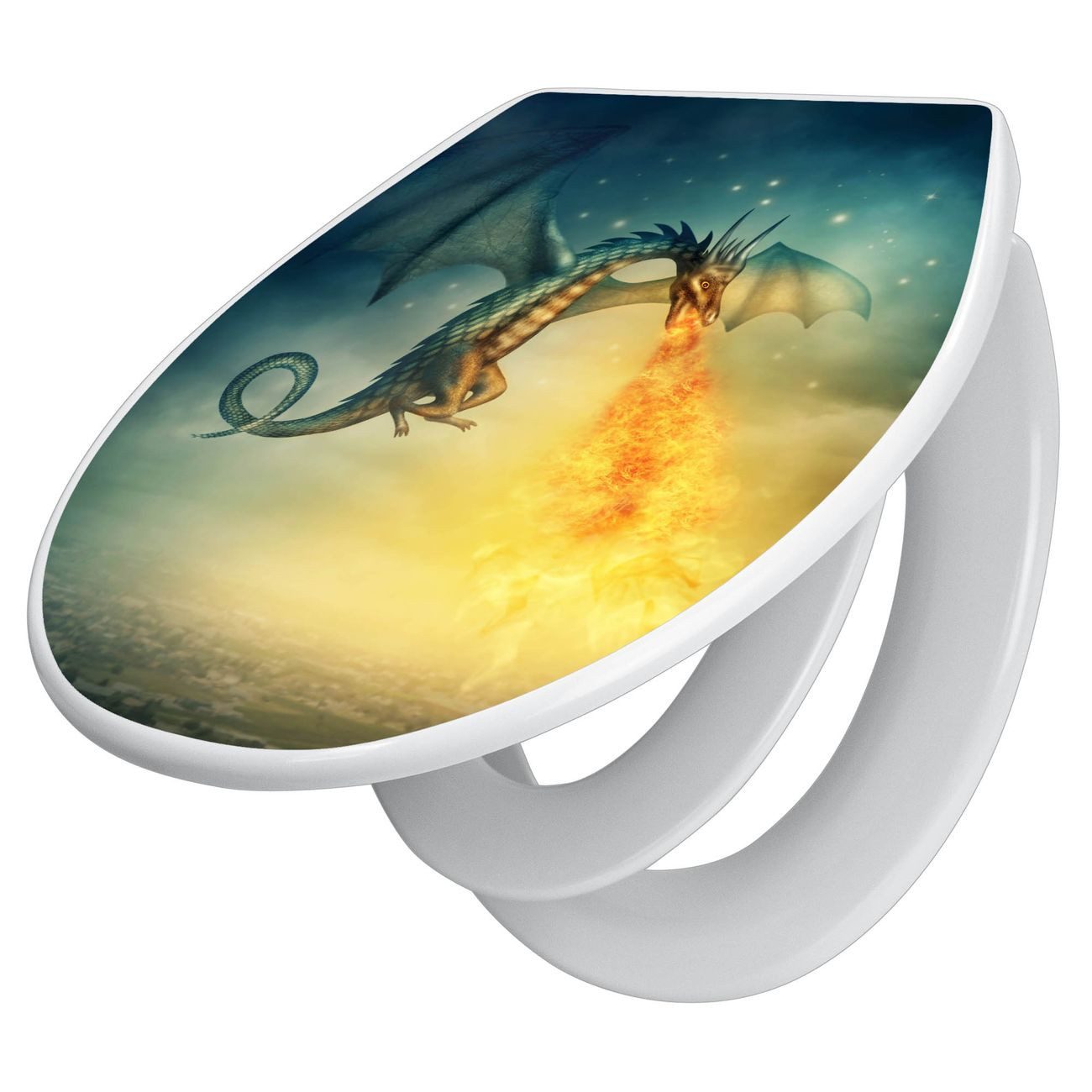banjado WC-Sitz Motiv Drachen (mit Kindersitz, integrierte Scharniere), ‎44 x 37 x 5cm
