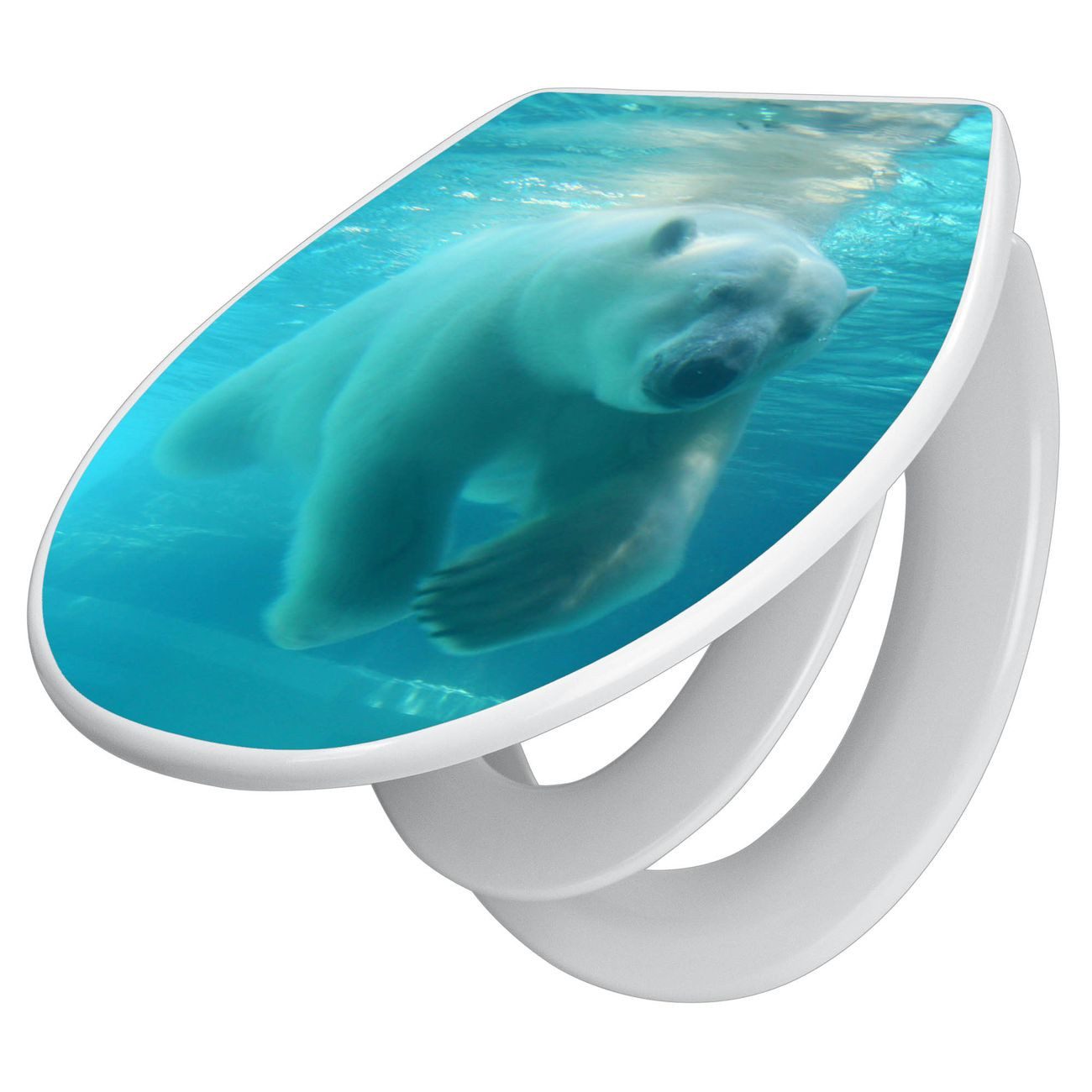 banjado WC-Sitz Motiv Eisbär unter Wasser (mit Kindersitz, integrierte Scharniere), ‎44 x 37 x 5cm