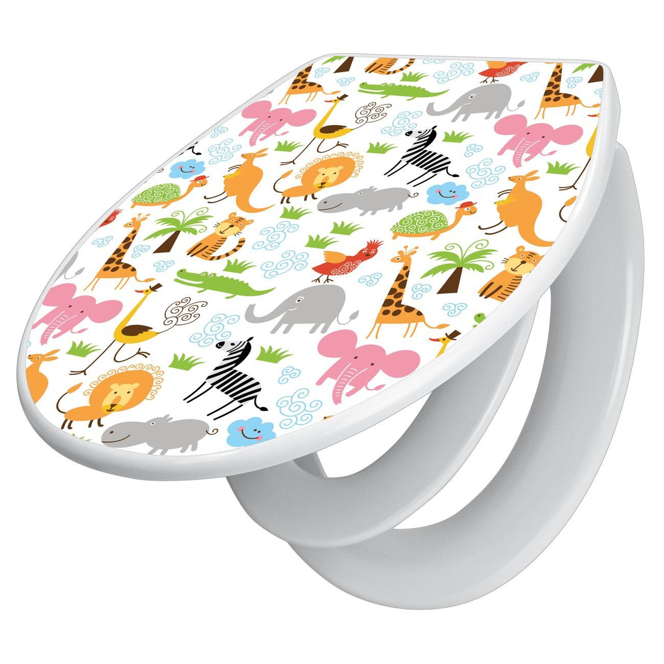 banjado WC-Sitz Motiv Fröhliche Tiere (mit Kindersitz, integrierte Scharniere), ‎44 x 37 x 5cm